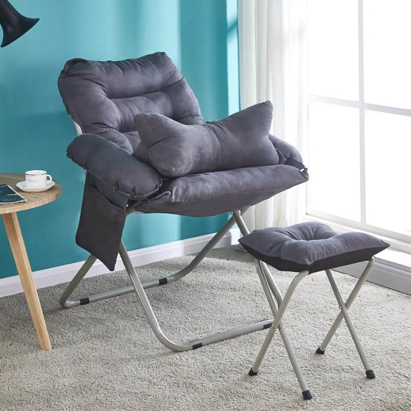 おしゃれなリラックスソファ|シンプルなデザインのオフィス&バルコニー用|昼寝や読書に最適な折りたたみ式一人掛けチェア|快適な布製クッション付き|自宅で使えるクリエイティブな背もたれ付き!