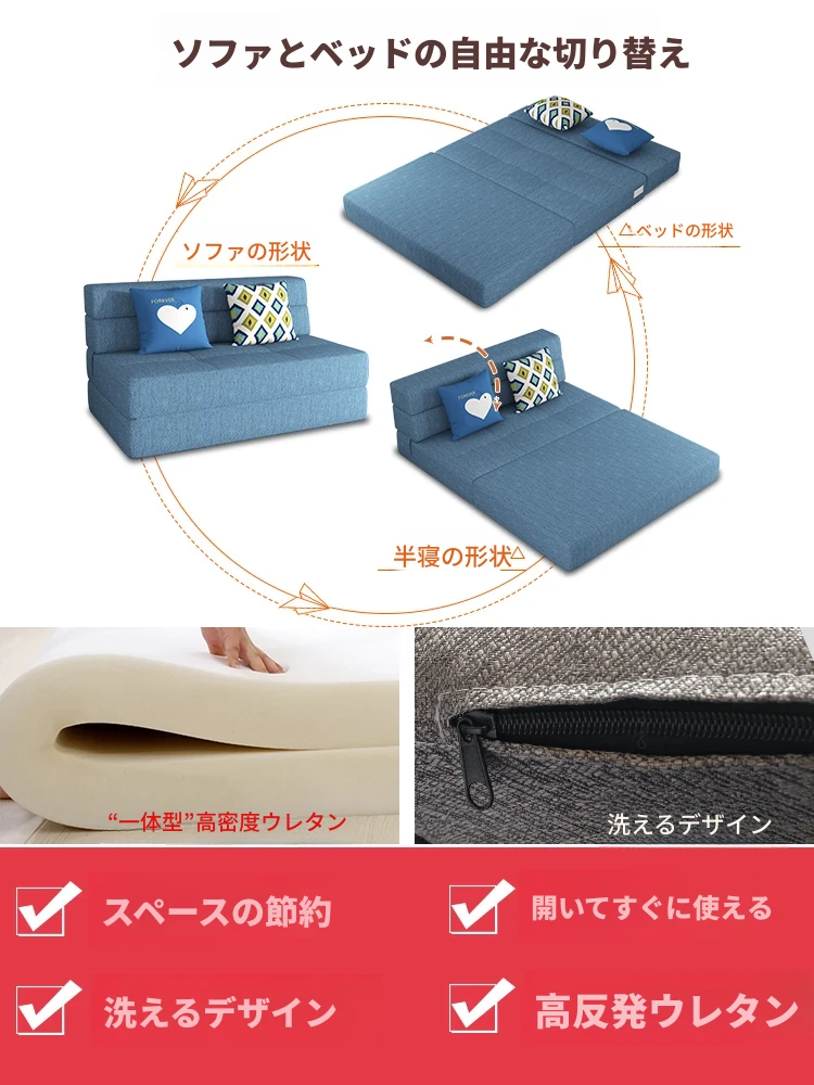折りたたみ可能な布製ソファベッド!小型リビングに最適な多機能デザイン、座るだけでなく寝ることもできる伸縮式ソファベッド。スペースを有効活用し、快適な生活空間を実現!