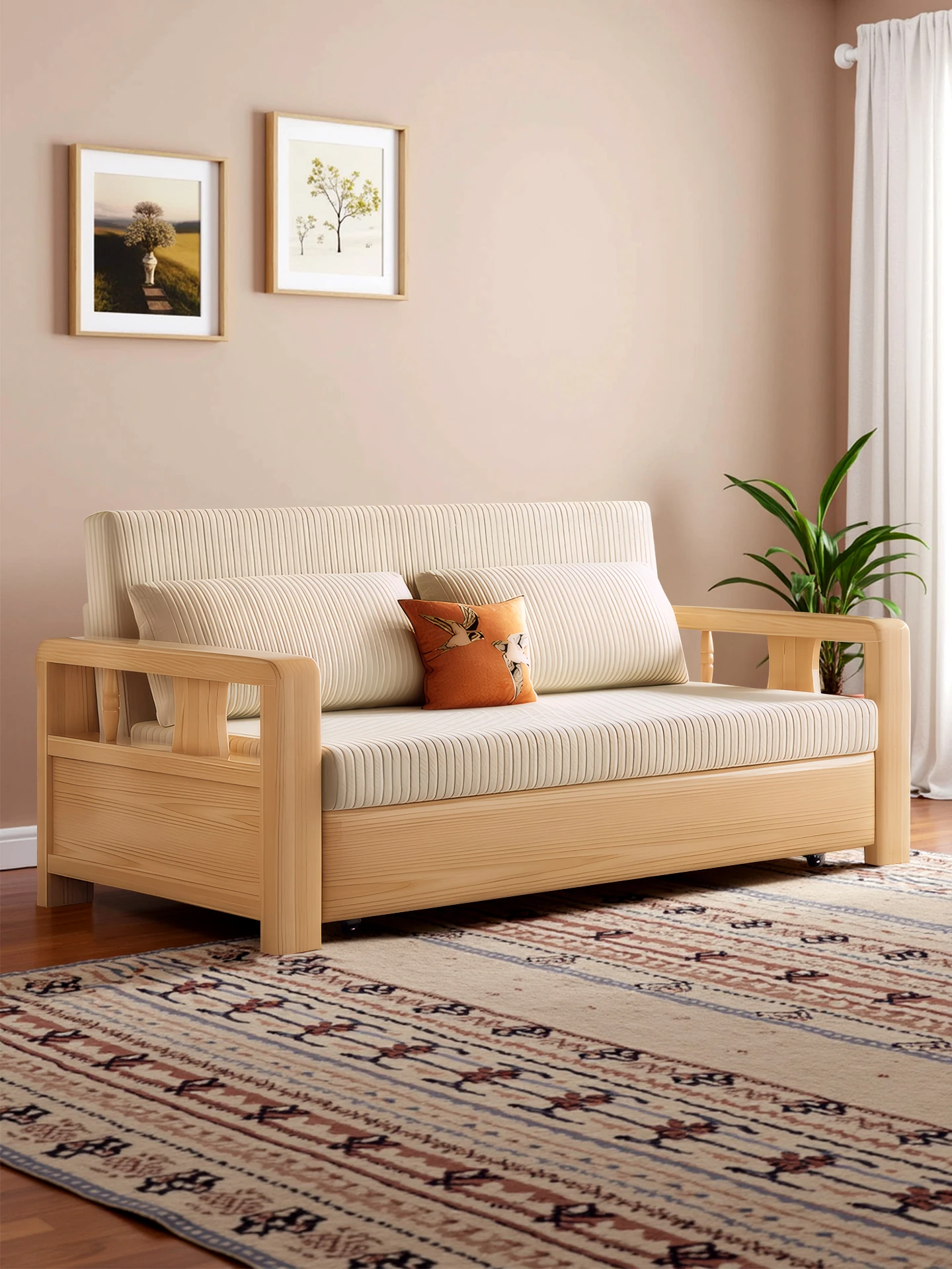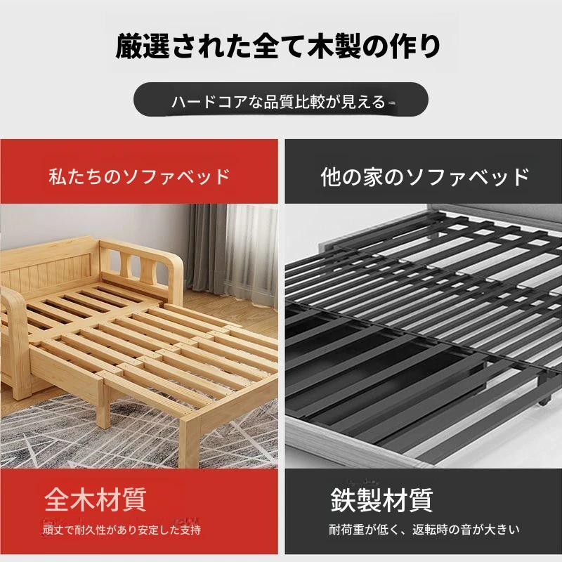 実木製ソファベッド|コンパクトな一人用|座る・寝る両方に対応|引き出し式で簡単収納|多機能折りたたみ伸縮ベッド|小さなお部屋にもぴったり!