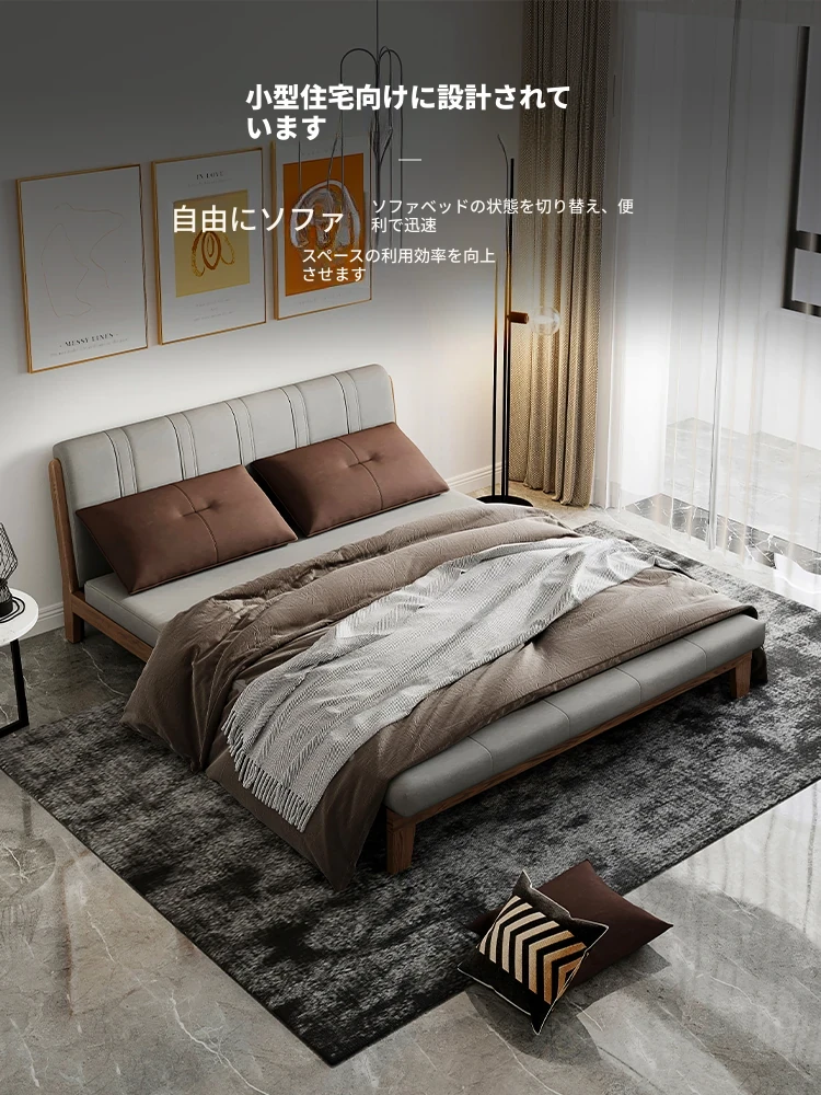 実木フレームのテクノロジー布製ソファベッド!折りたたみ式で省スペース、2人用の小型住宅にぴったり。多機能で引き出し可能、必要に応じて変形するベッドです。快適な暮らしをサポートします!