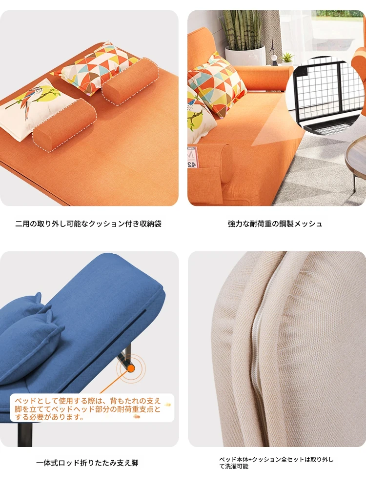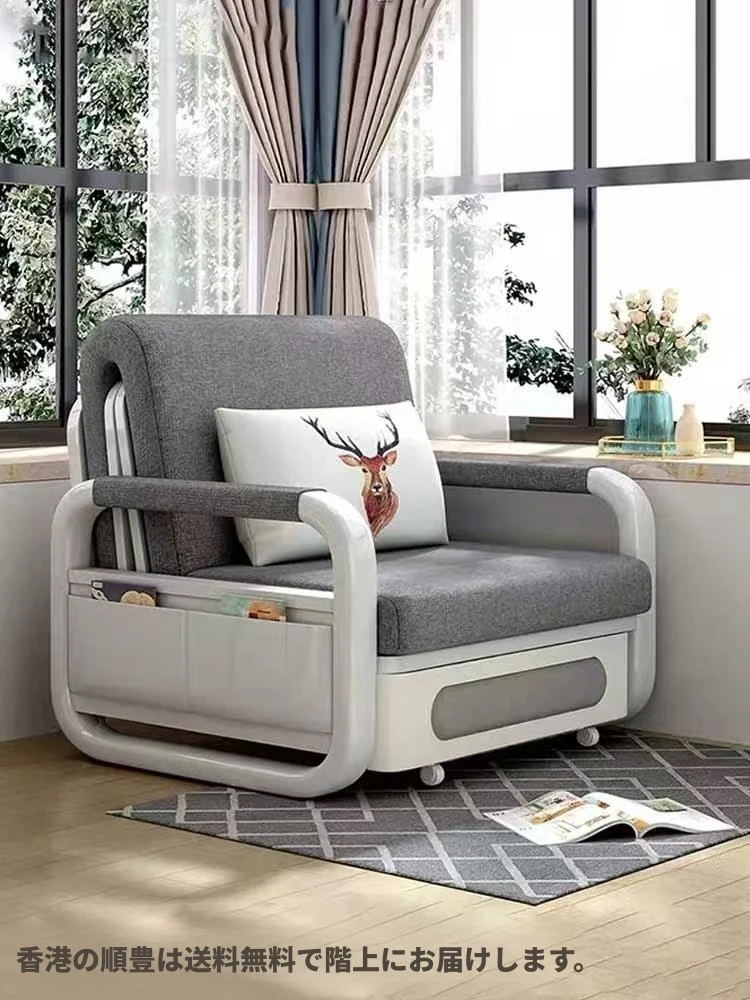 【香港送料無料】折りたたみ式ファブリックソファベッド!多機能で伸縮可能、リビングやバルコニーに最適な小型収納ソファ。狭い空間でもスタイリッシュに!