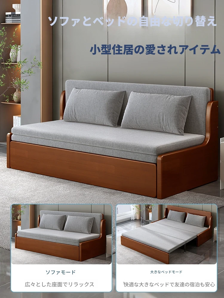 折りたたみ式ソファベッド|多機能で省スペースの現代的なミニマリストデザイン|天然木製の収納付き|おしゃれなリビングにぴったり!