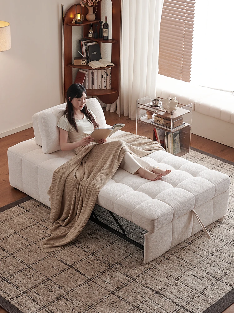 おしゃれな小型一人用ソファベッド!伸縮式でリビング、寝室、バルコニーにぴったりの多機能収納ソファ。クリーミーな風合いで、スペースを有効活用しながらスタイリッシュに演出します。