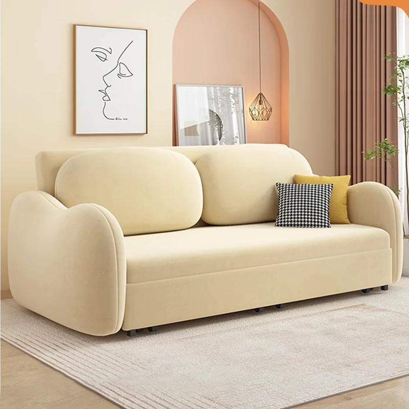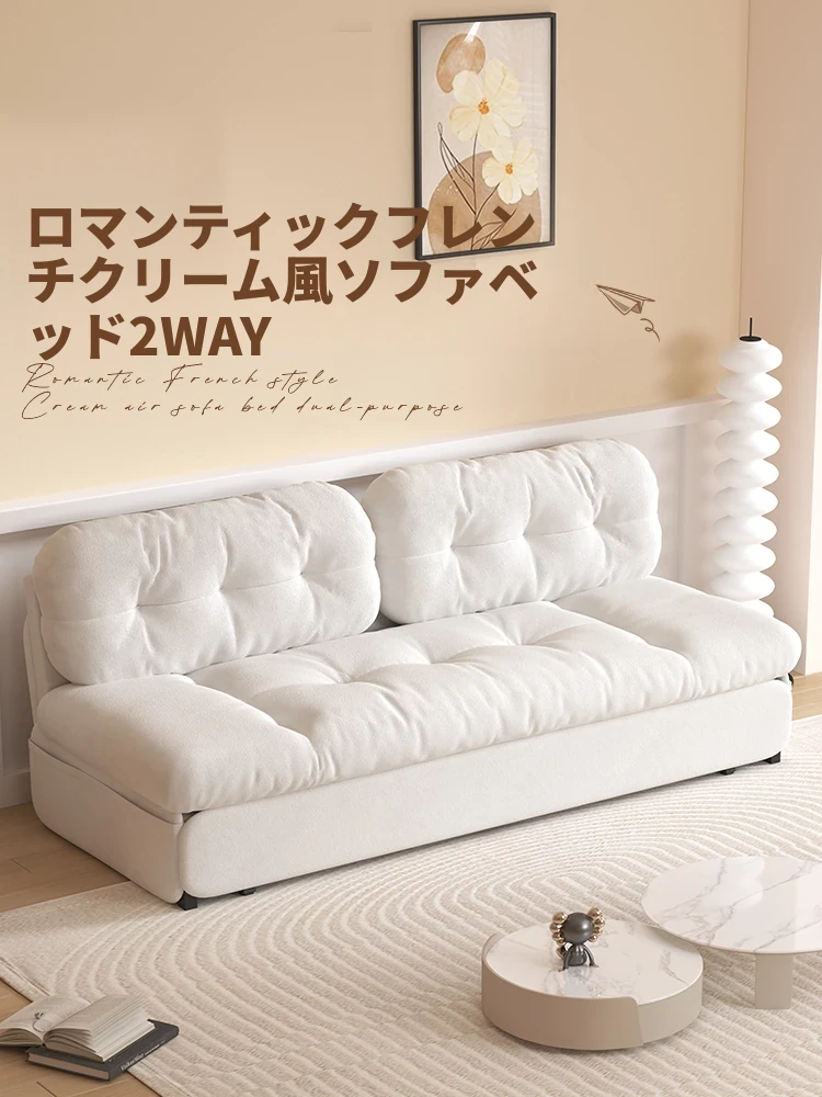 【香港送料無料】フレンチスタイルのクリームカラーフォームソファベッド - リビングルームにぴったりな小型折りたたみ式2WAYソファ、2024年新作!快適な眠りと洗練されたデザインを実現!