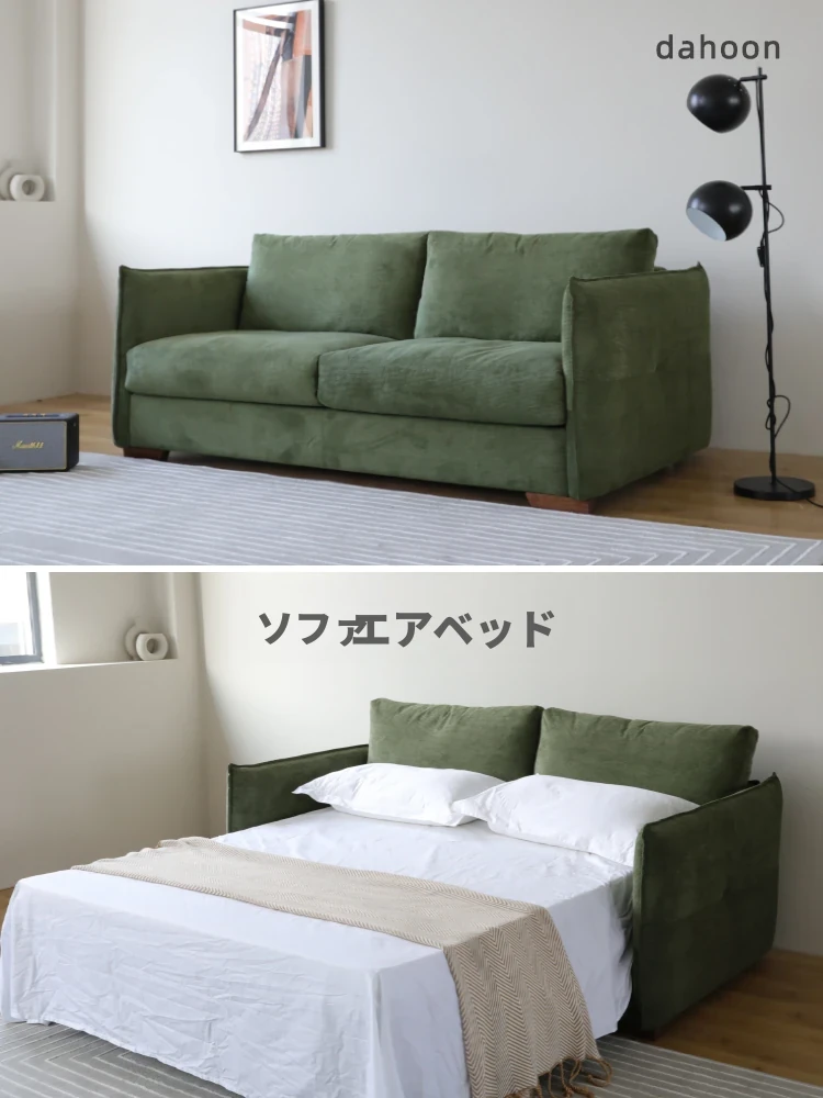 北欧スタイルの高級2in1ソファベッド - 折りたたみ・洗濯可能で、リビングや書斎に最適な小型多機能ダブルベッド!狭いスペースでもおしゃれに快適に。