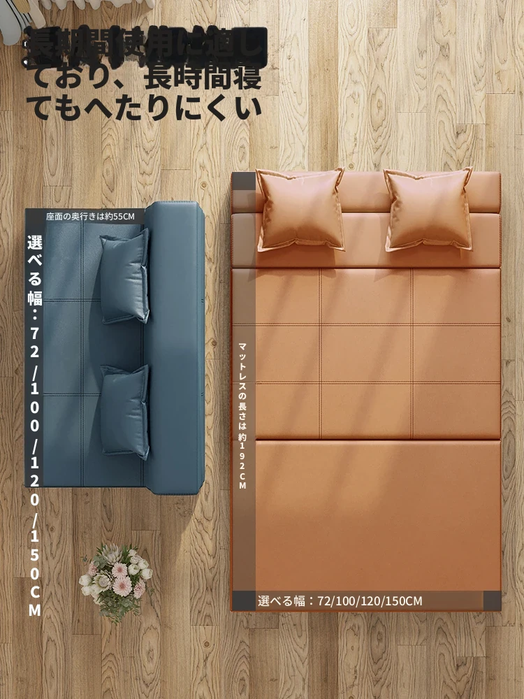 【香港発】折りたたみ式2WAYソファベッド - 多機能収納付き、自然木材使用でスタイリッシュなデザイン!快適な寝心地とおしゃれなインテリアを両立。お部屋をおしゃれに変身させるアイテムです!