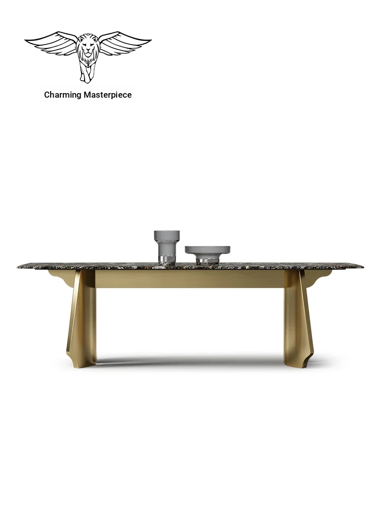 Charming Master Natural Marble Dining Table - Luxurious High-End Rectangular Table for Villas and Home Dining Rooms, Elegant Stone Design