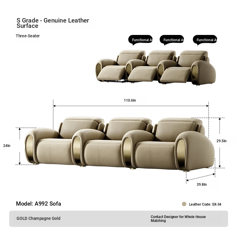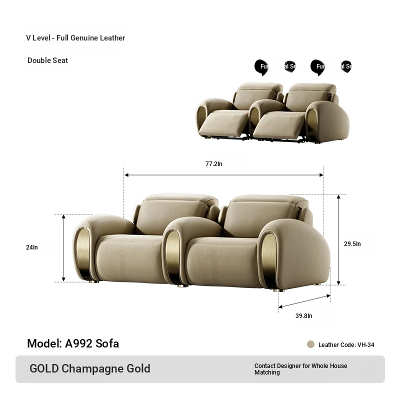 Film and television function sofa/Double position/S Grade half leather/South American walnut edge