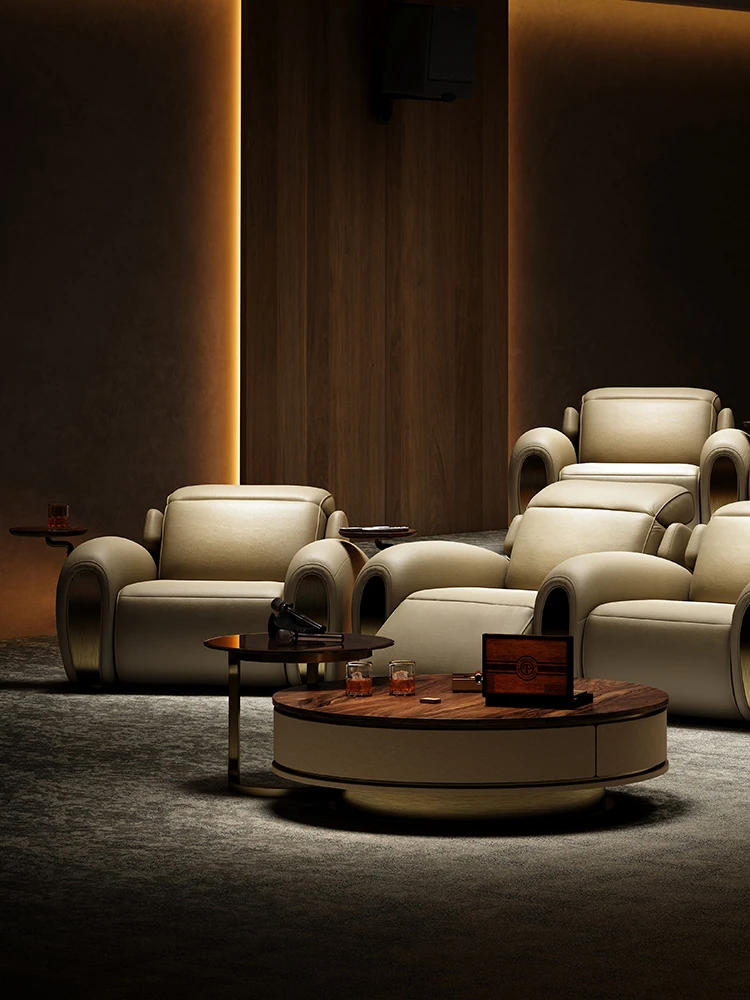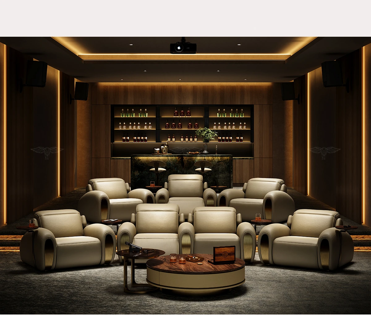 Charming Master Cinema Sofa - Luxury Multifunctional Electric Recliner for Home Theaters and Villas, Effortlessly Expanding for Ultimate Comfort and Style.
