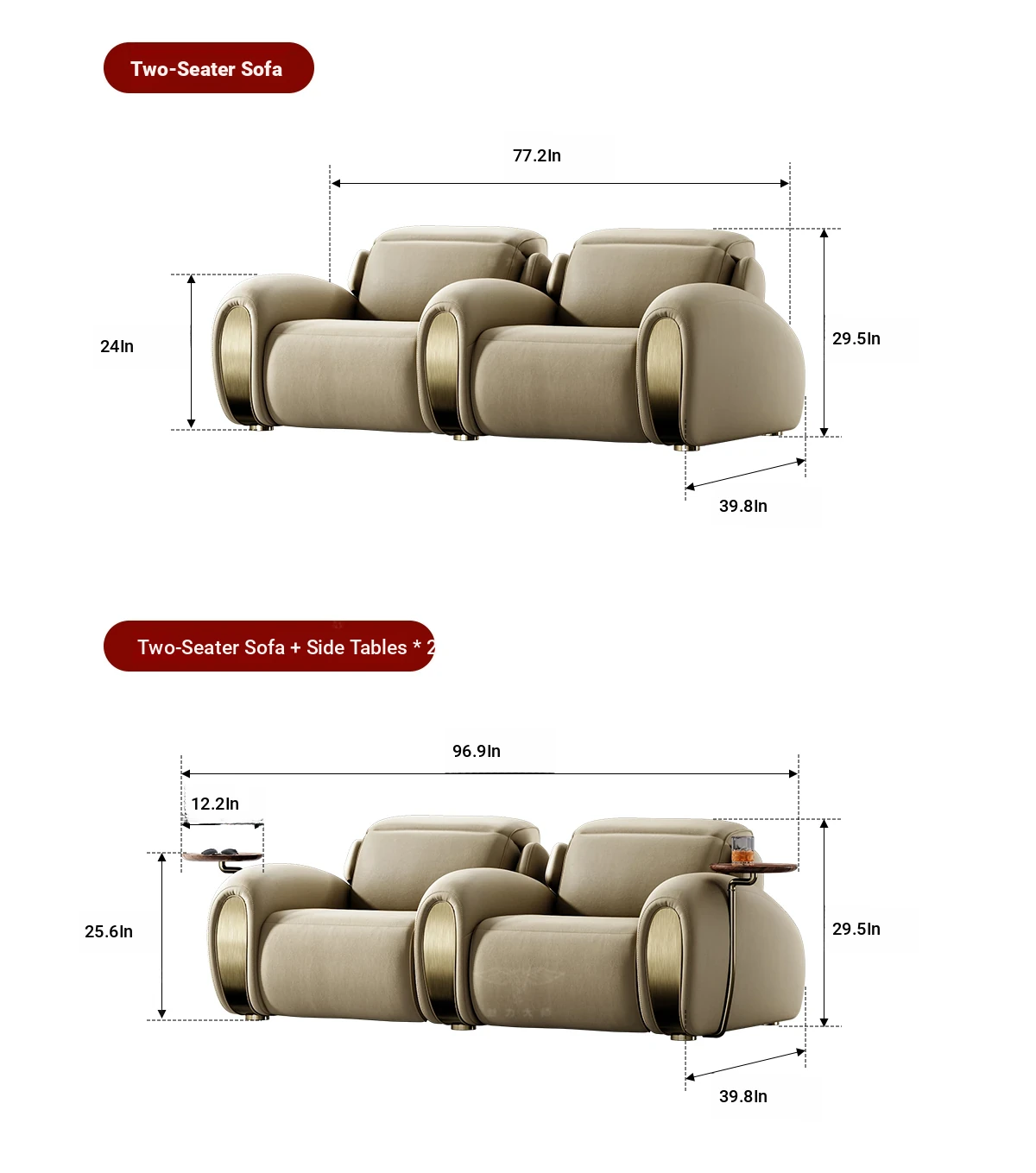 Film and television function sofa/Double position/South American walnut side table/V grade full leather