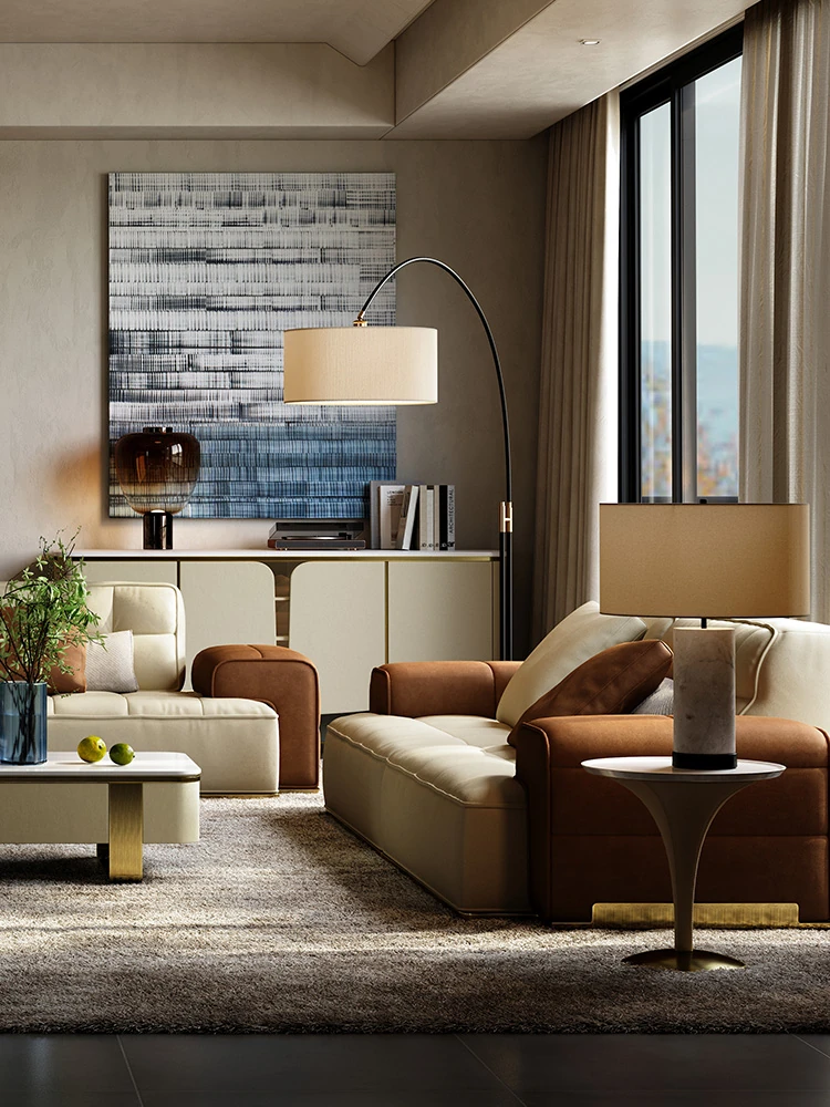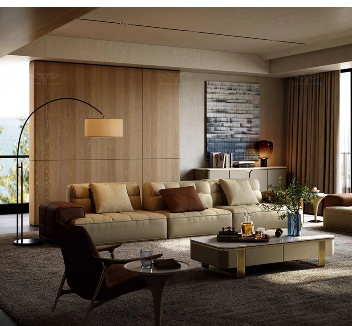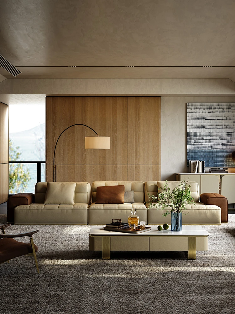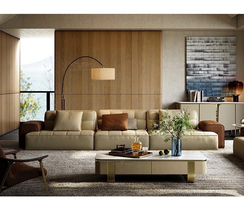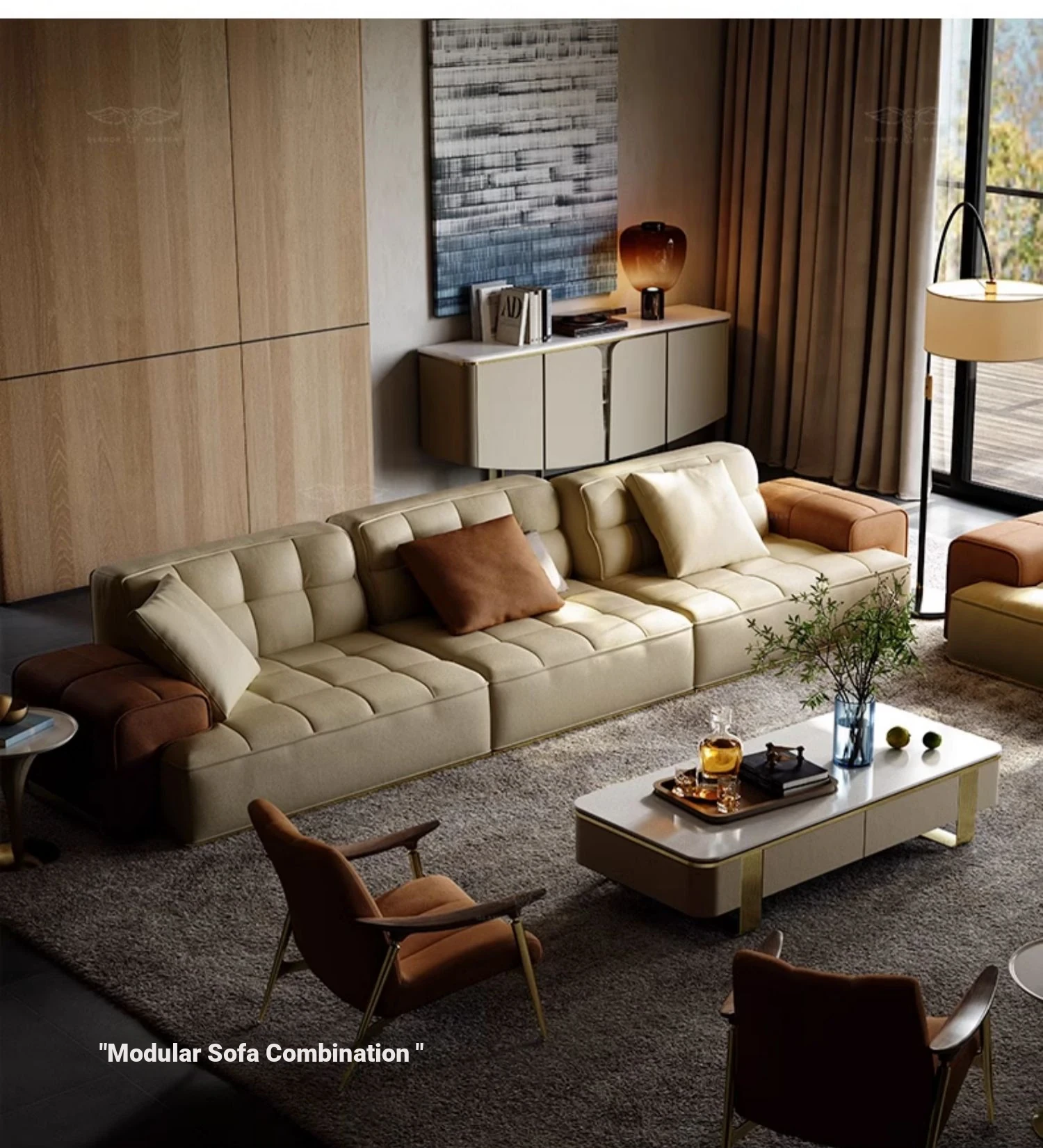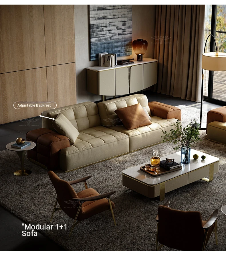 Charming Master Dynamic Island Modular Sofa - Italian Leather Villa Living Room Couch with Movable Backrest for Versatile Comfort