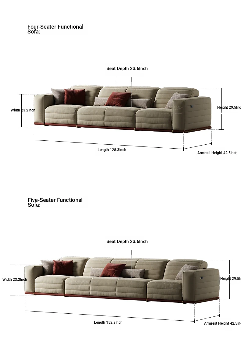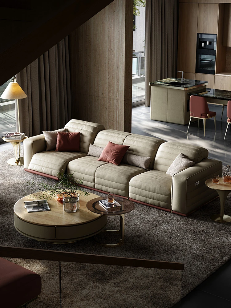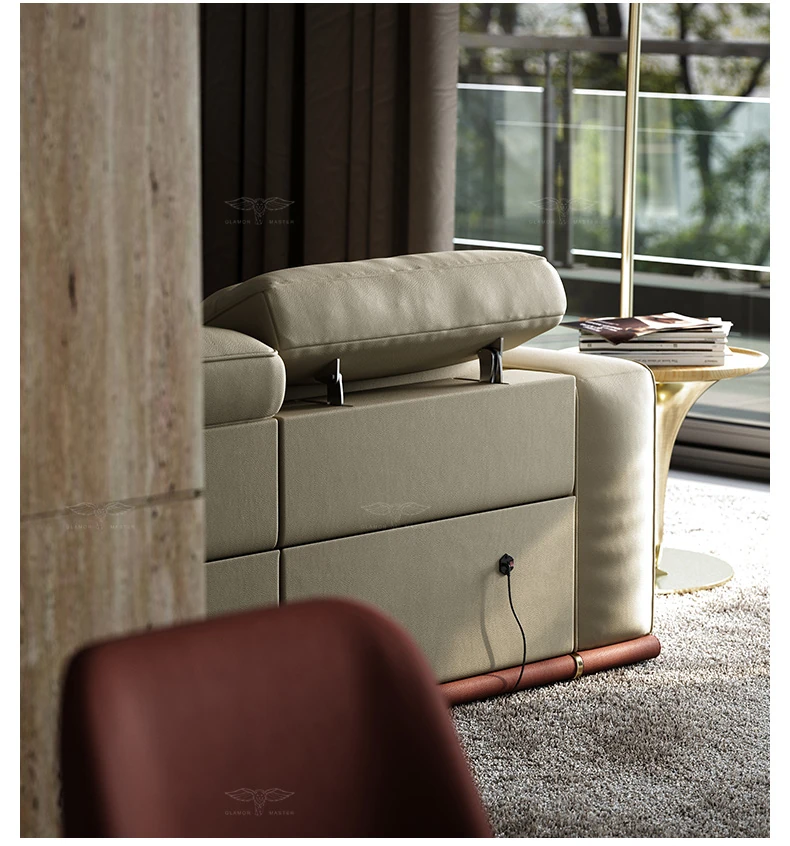 Charming Master Italian Luxe Functional Sofa - Elegant Minimalist Electric Leather Sofa for Luxury Villa Living Room