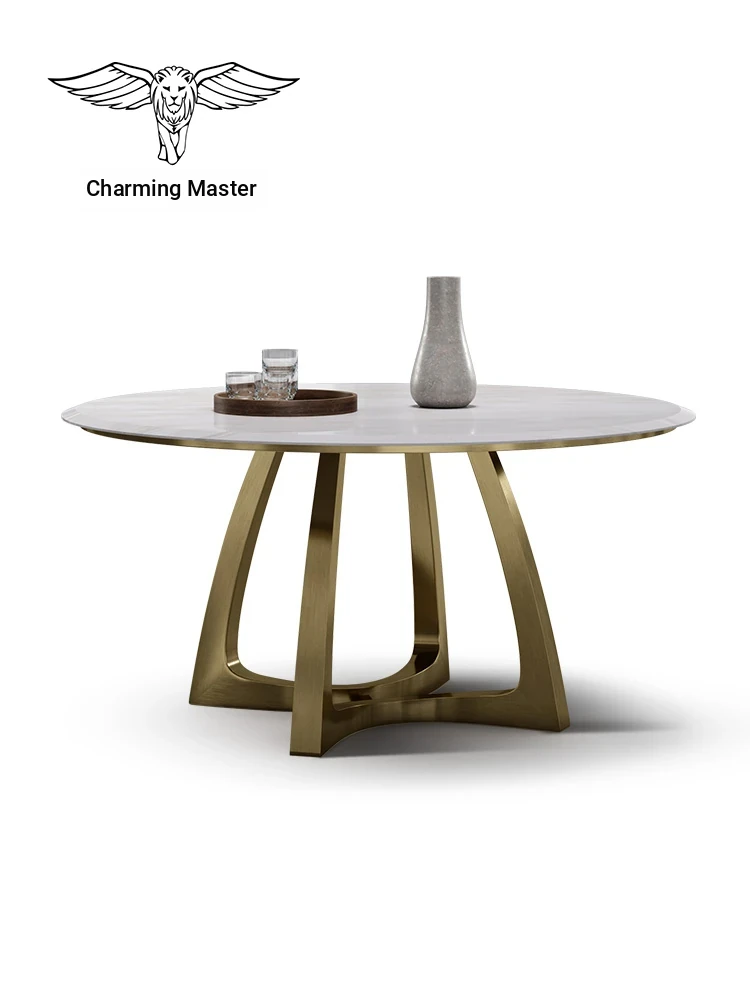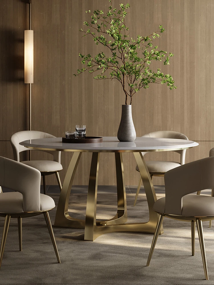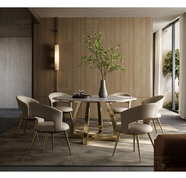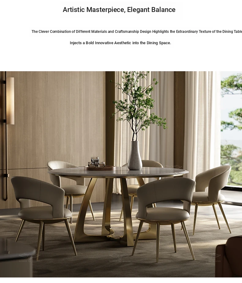 Charming Master Luxury Natural Marble Round Dining Table for Small Spaces - Original Elegant Stone Table and Chair Set for Home Use