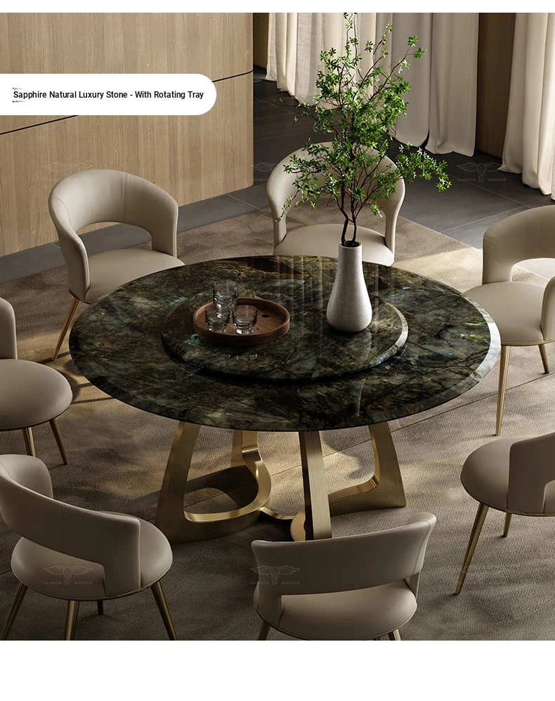 Dining table/51.18in/with turntable/Sapphire natural stone