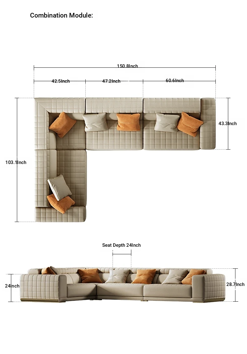 Functional sofa/combination ① module/S Grade half leather/champagne gold