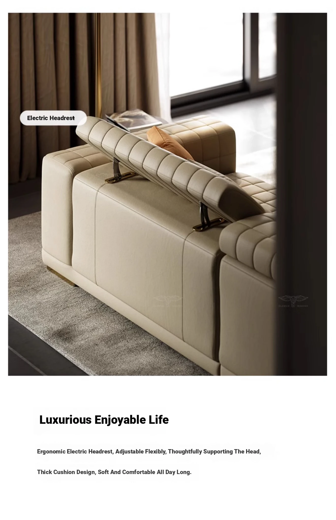 Charming Master Multi-Functional Sofa – Luxurious Real Leather Electric Sofa for Modern Villa Living Room, Adjustable and Stylish for Ultimate Comfort