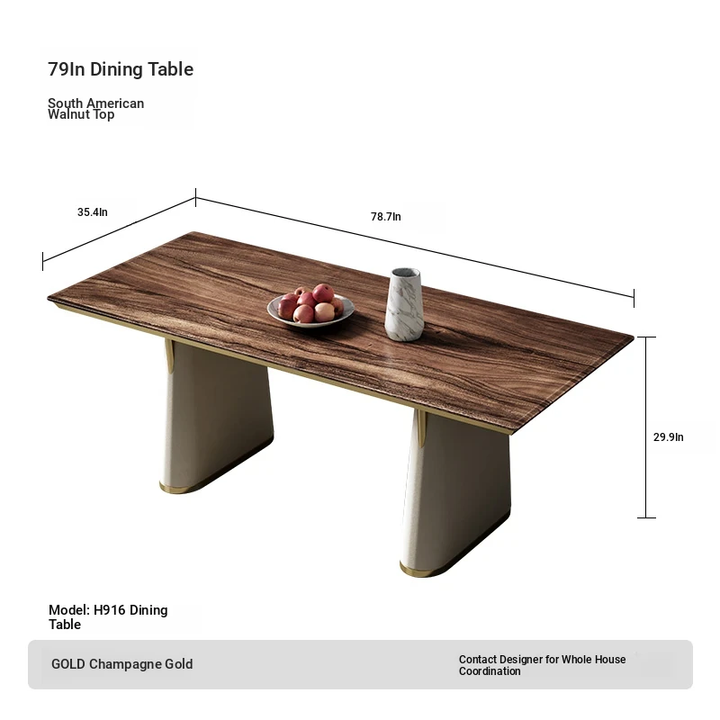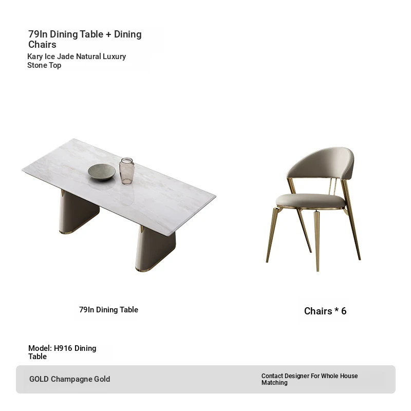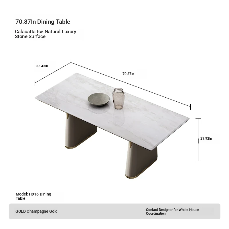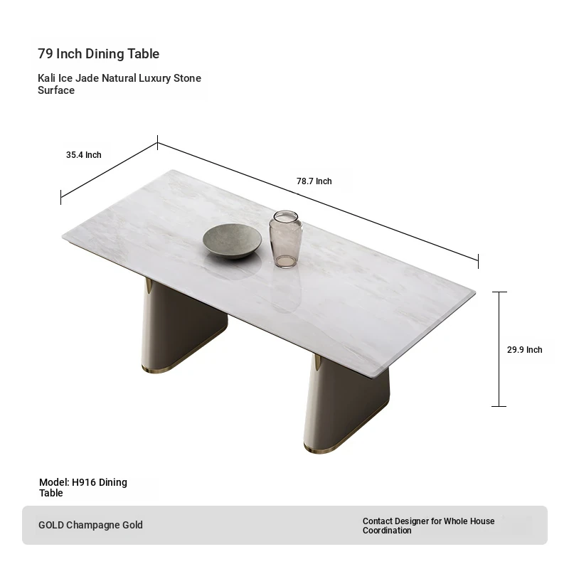 Dining Table/78.74in/Cary Icestone Natural Stone/Champagne Gold