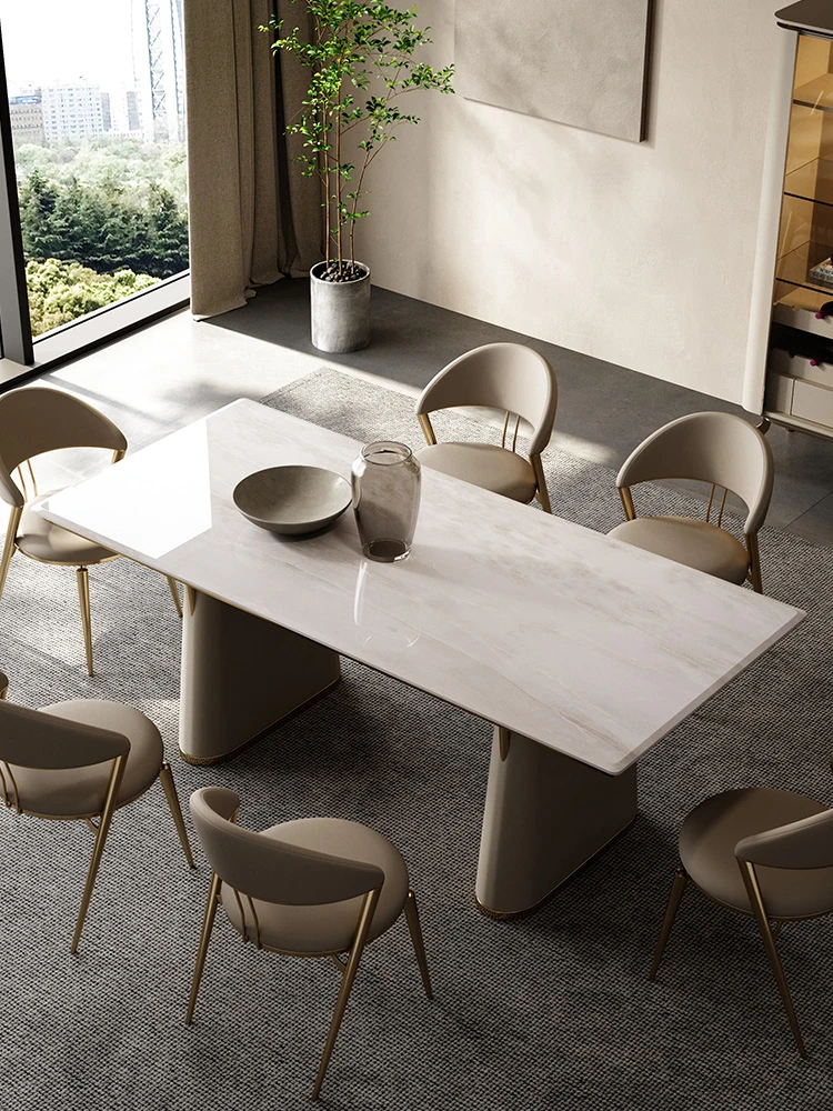 Chic Master Luxury Marble Dining Table - Elegant Natural Stone Design for Upscale Villas and Spacious Homes, Perfect for Stylish Dining Experiences