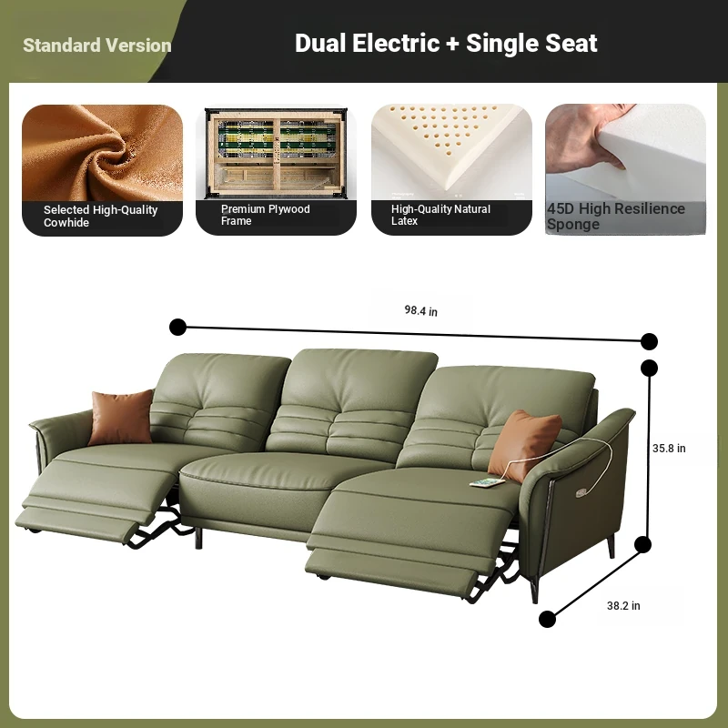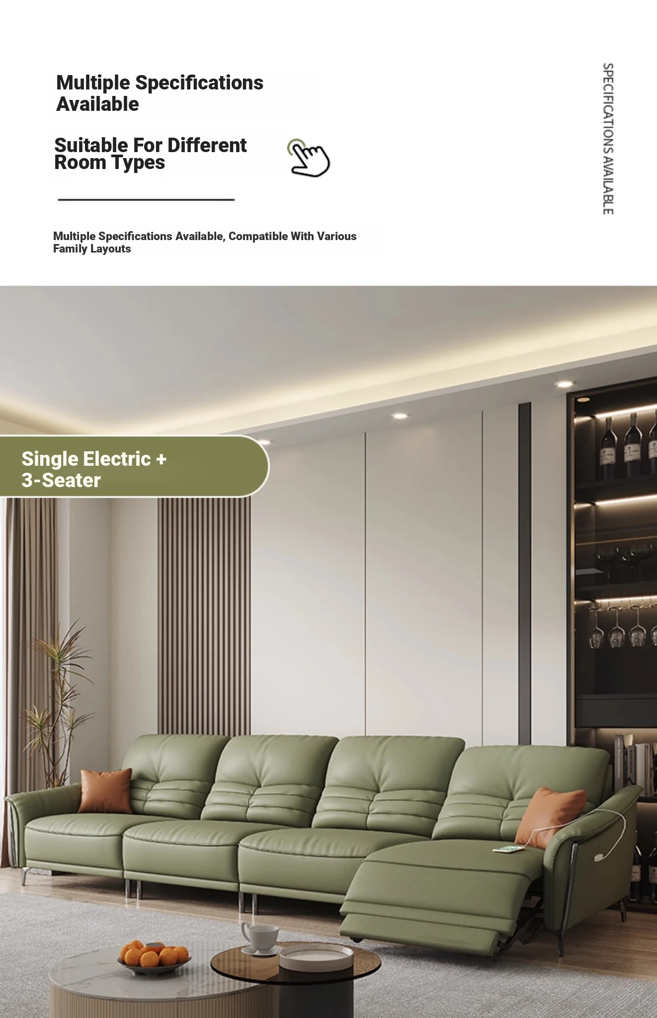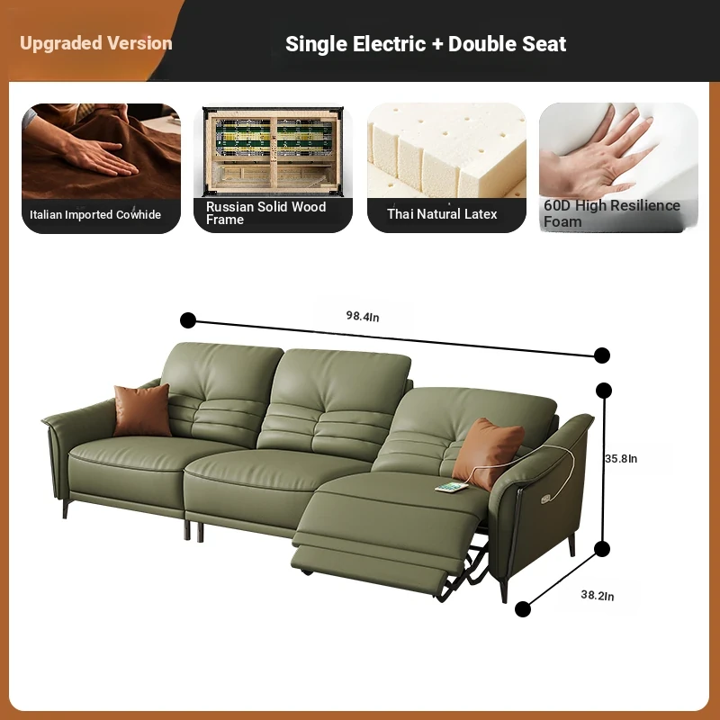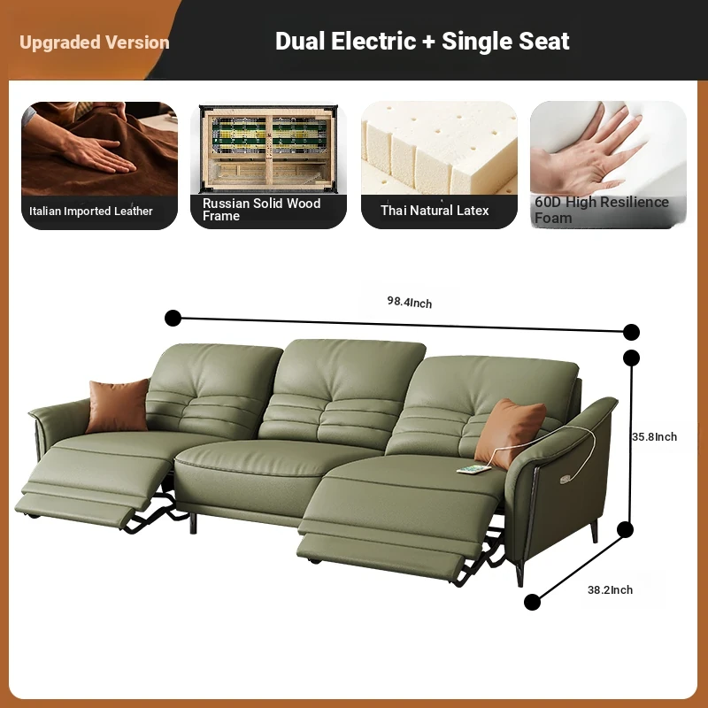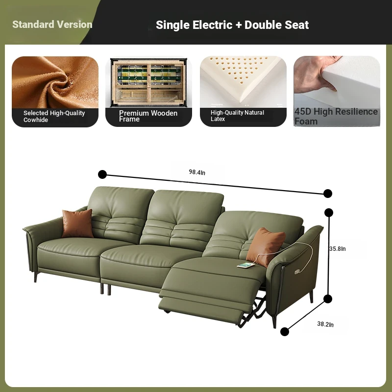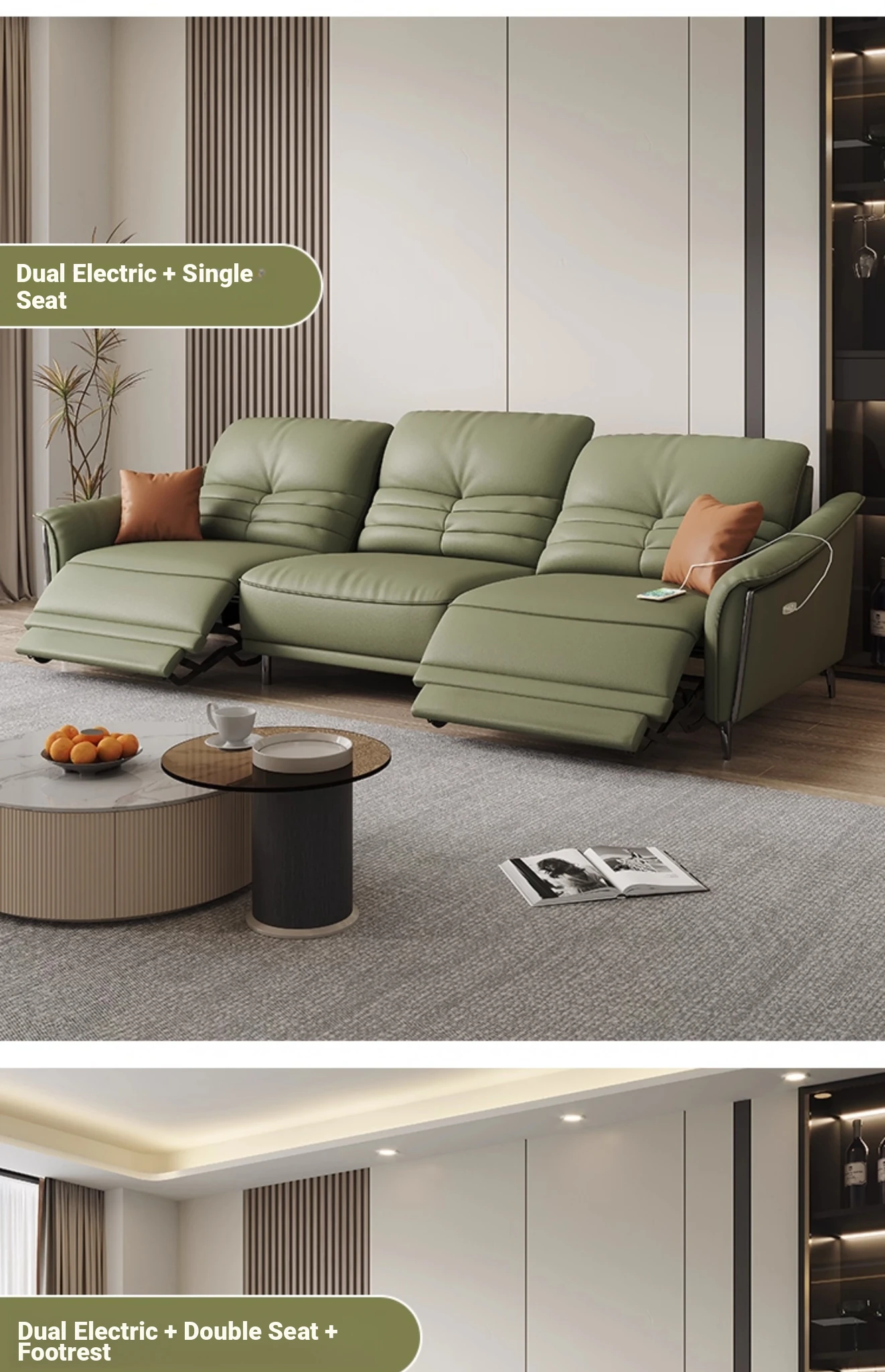 Electric Multi-Functional Genuine Leather Reclining Sofa Bed - Adjustable 3-Seater for Living Room, Wall-Free Design, First-Class Space Capsule Comfort