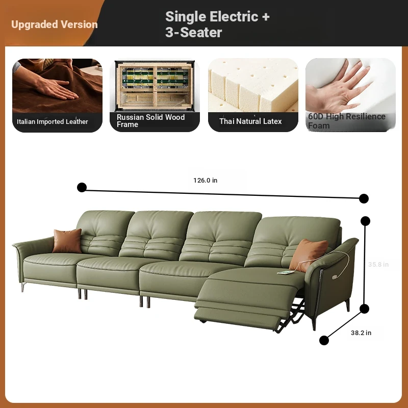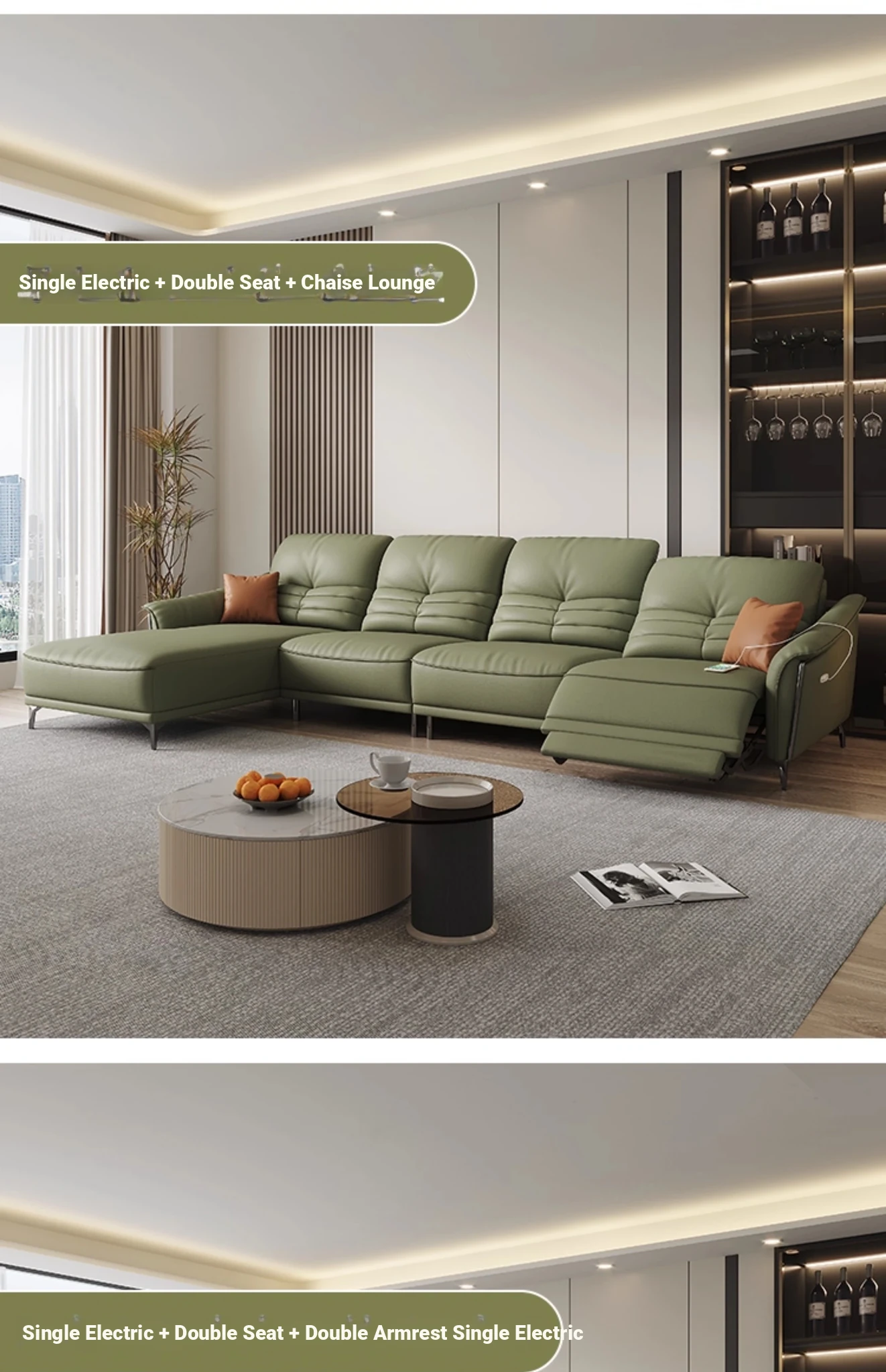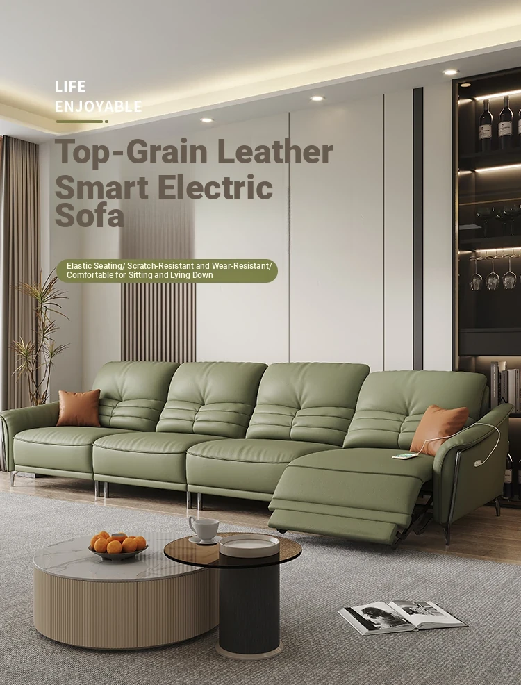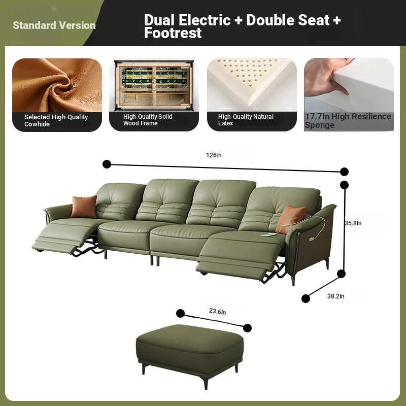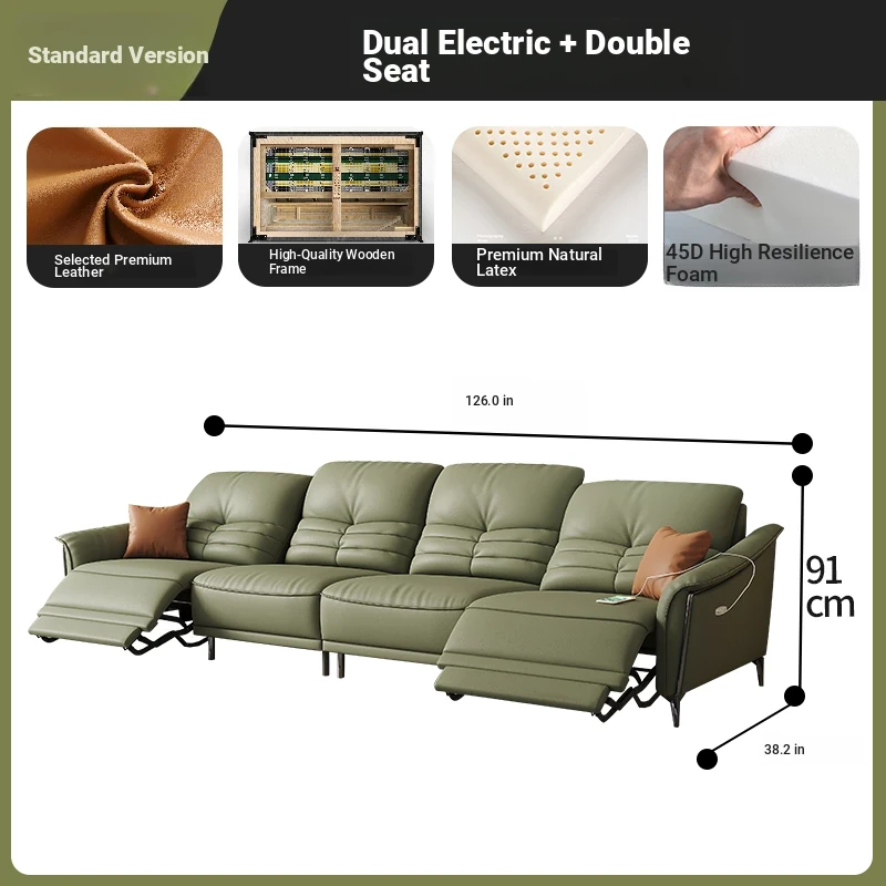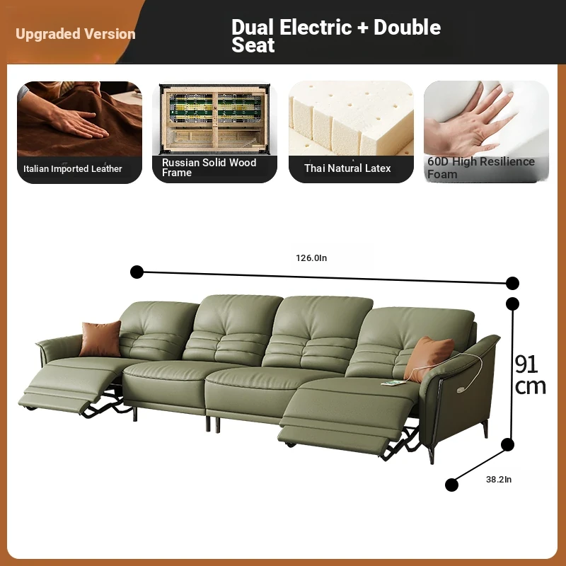 Electric Multi-Functional Genuine Leather Reclining Sofa Bed - Adjustable 3-Seater for Living Room, Wall-Free Design, First-Class Space Capsule Comfort