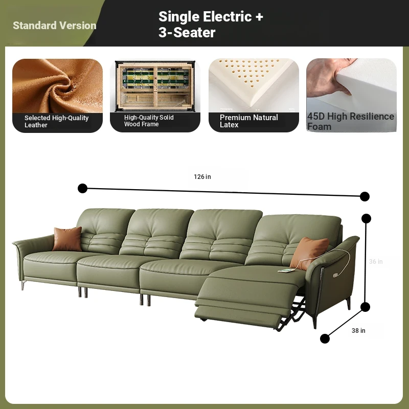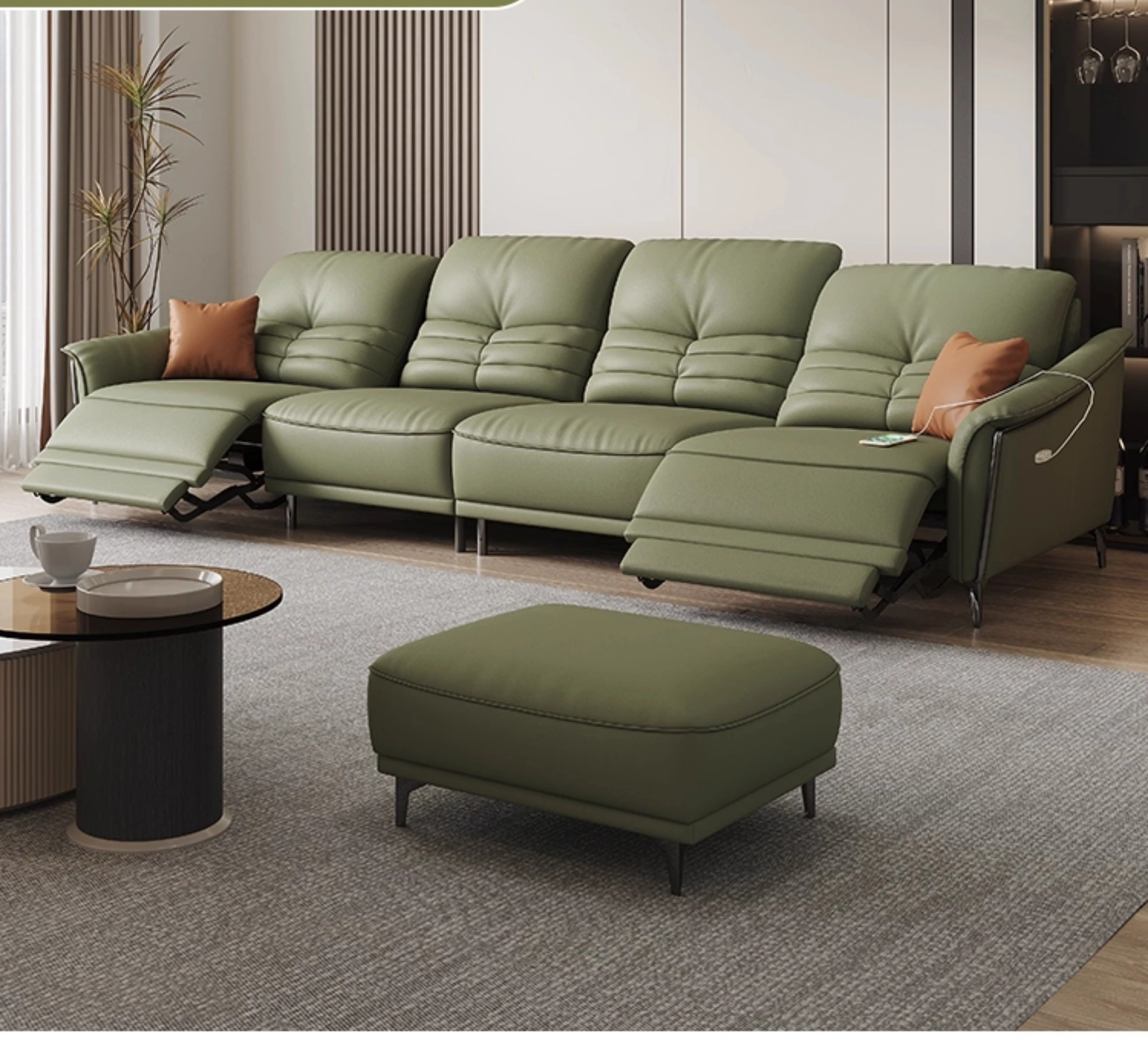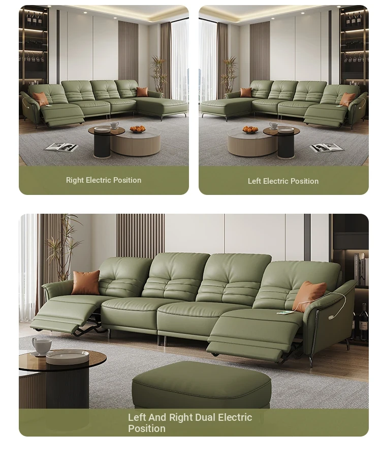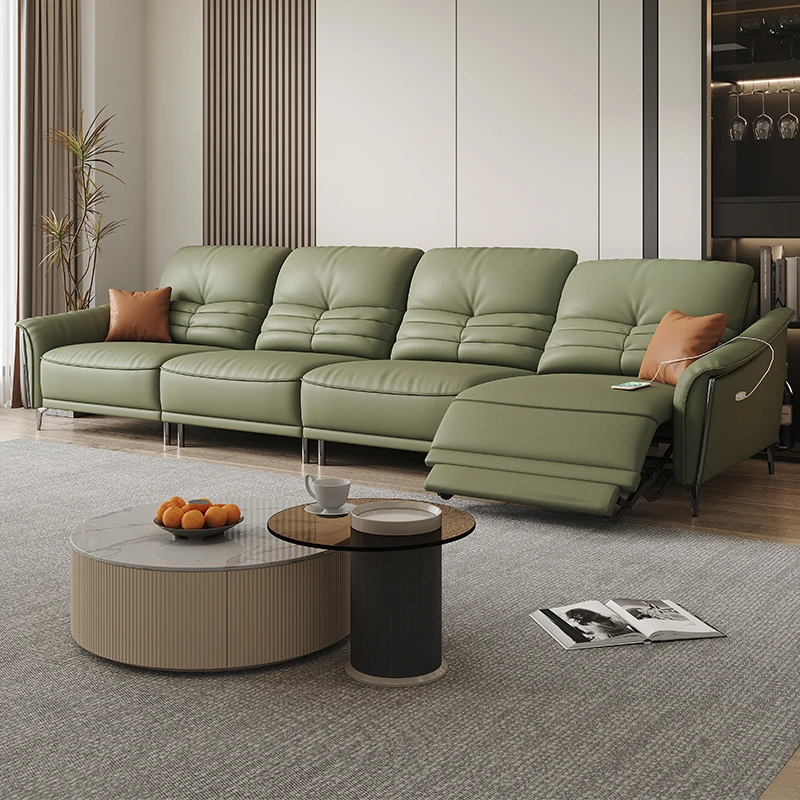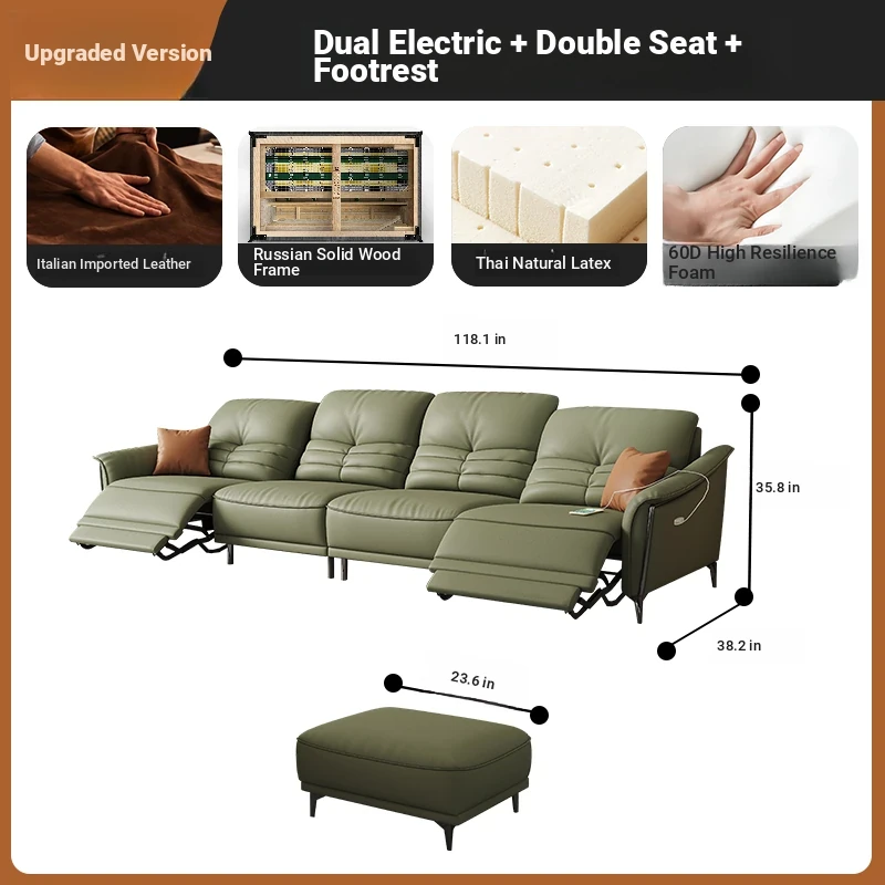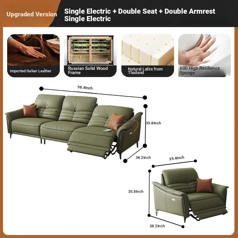 Electric Multi-Functional Genuine Leather Reclining Sofa Bed - Adjustable 3-Seater for Living Room, Wall-Free Design, First-Class Space Capsule Comfort