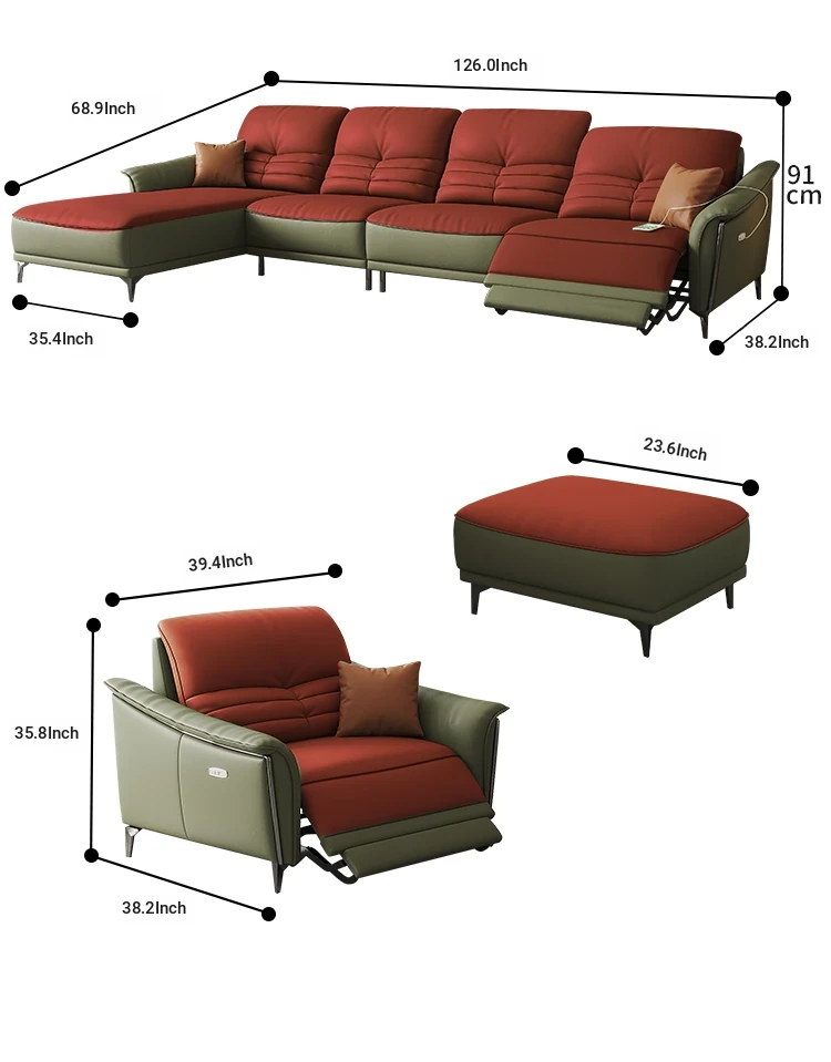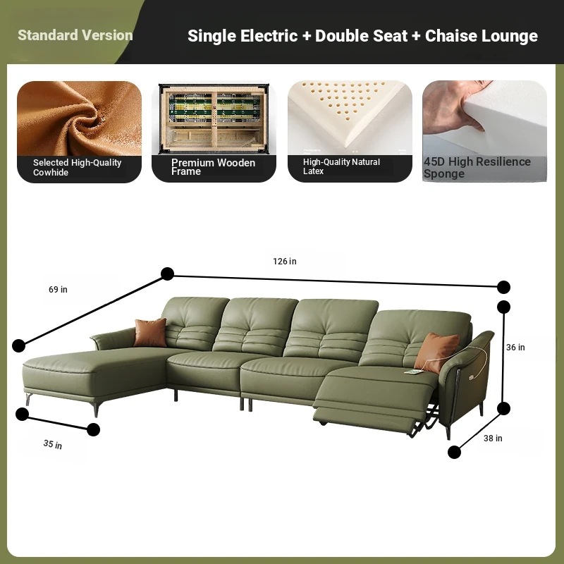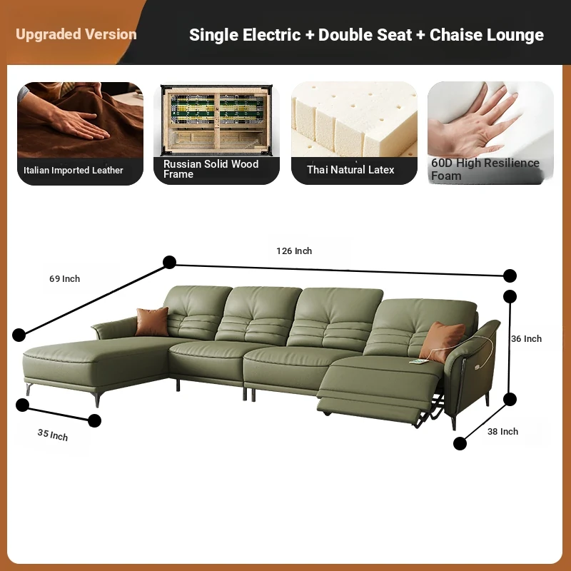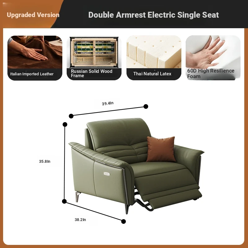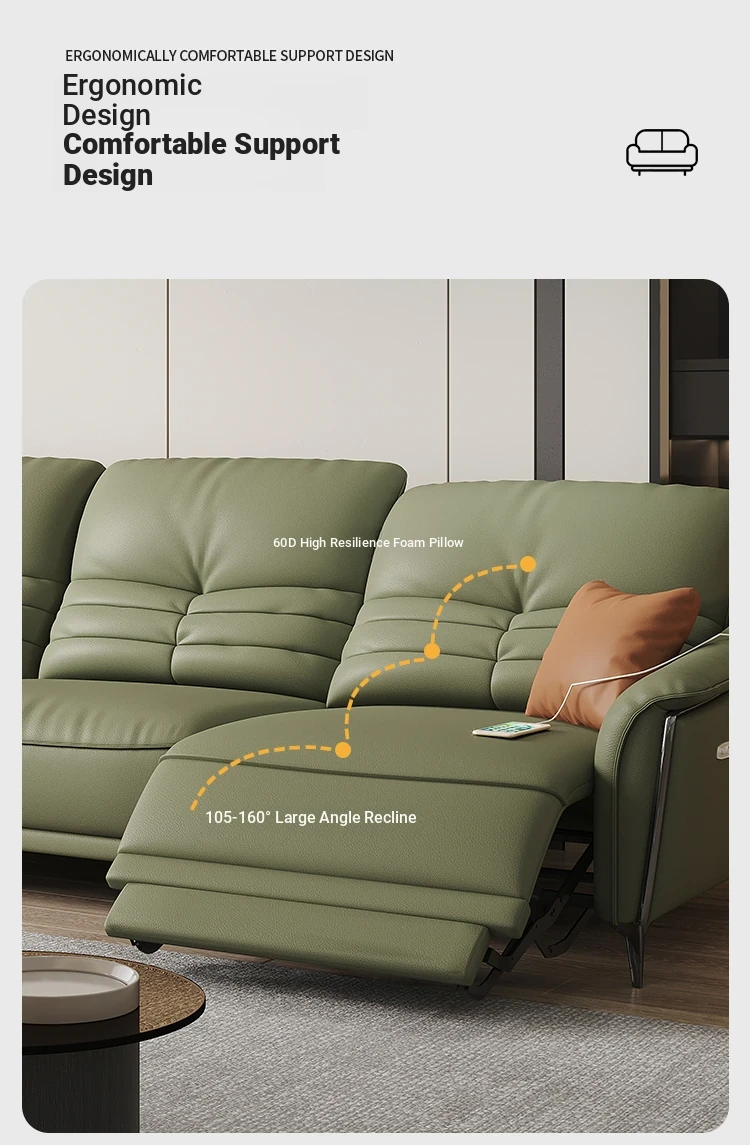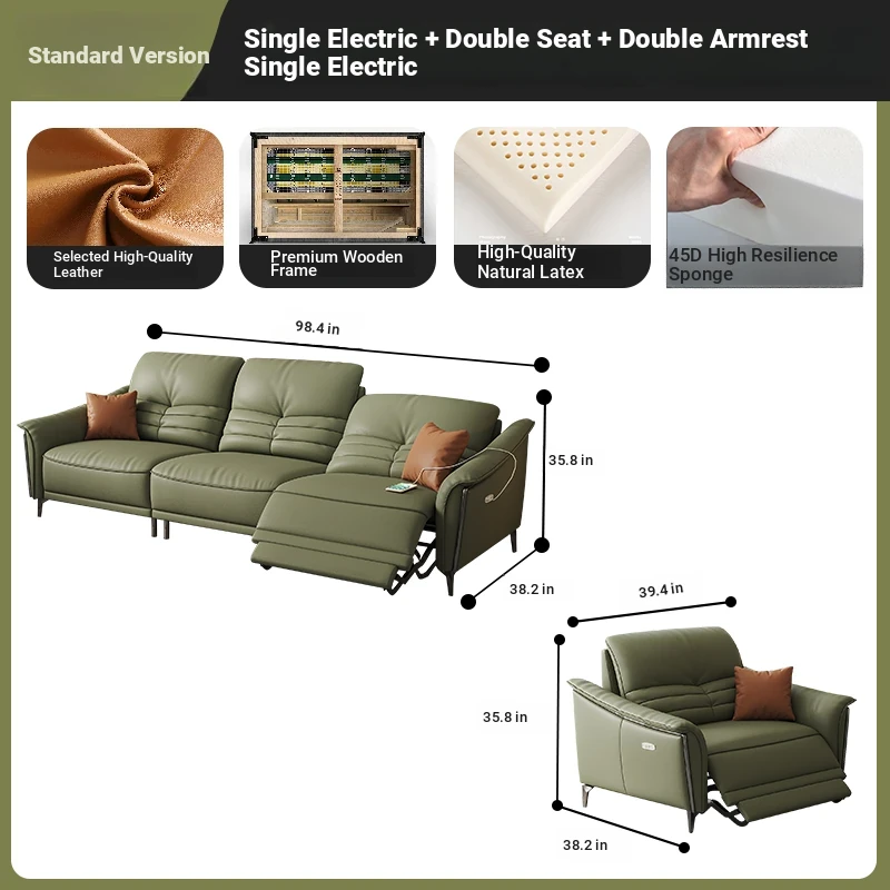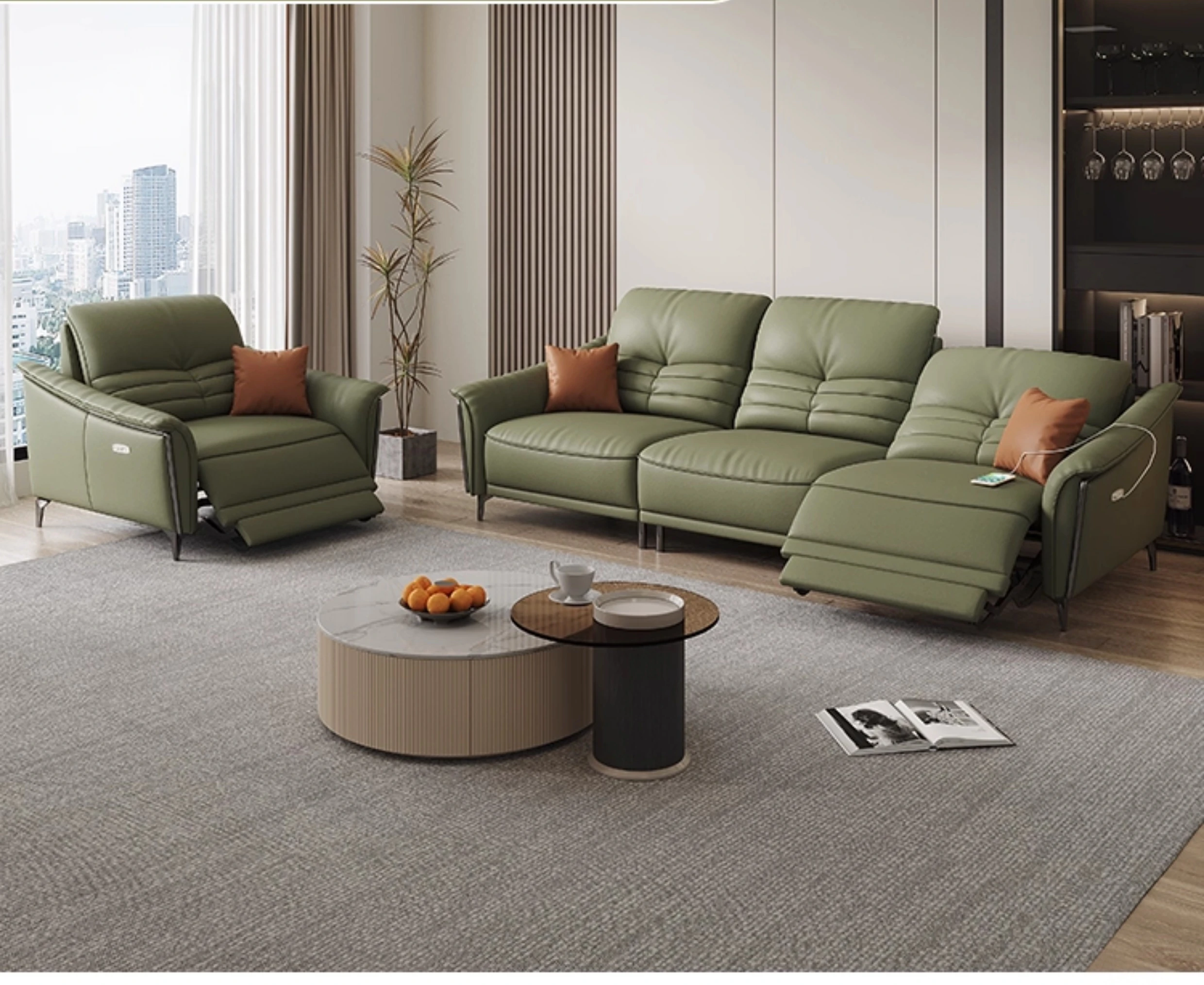 Electric Multi-Functional Genuine Leather Reclining Sofa Bed - Adjustable 3-Seater for Living Room, Wall-Free Design, First-Class Space Capsule Comfort
