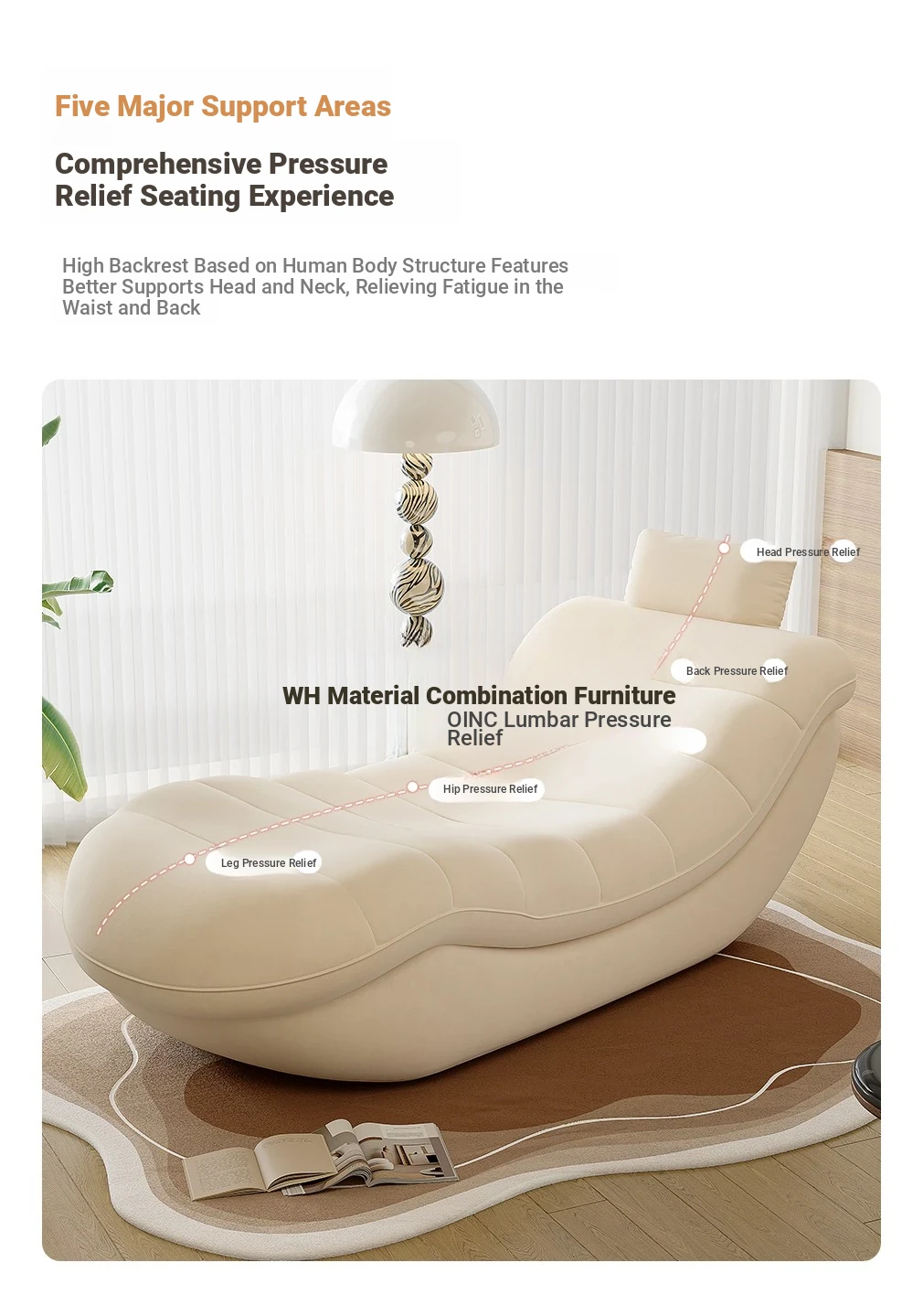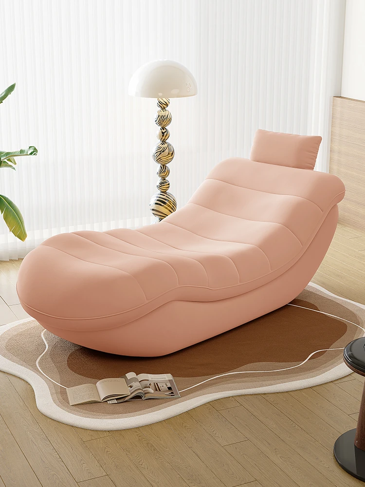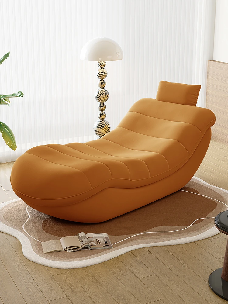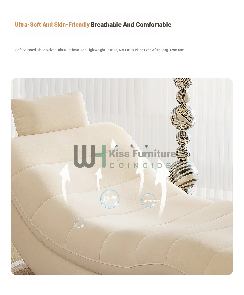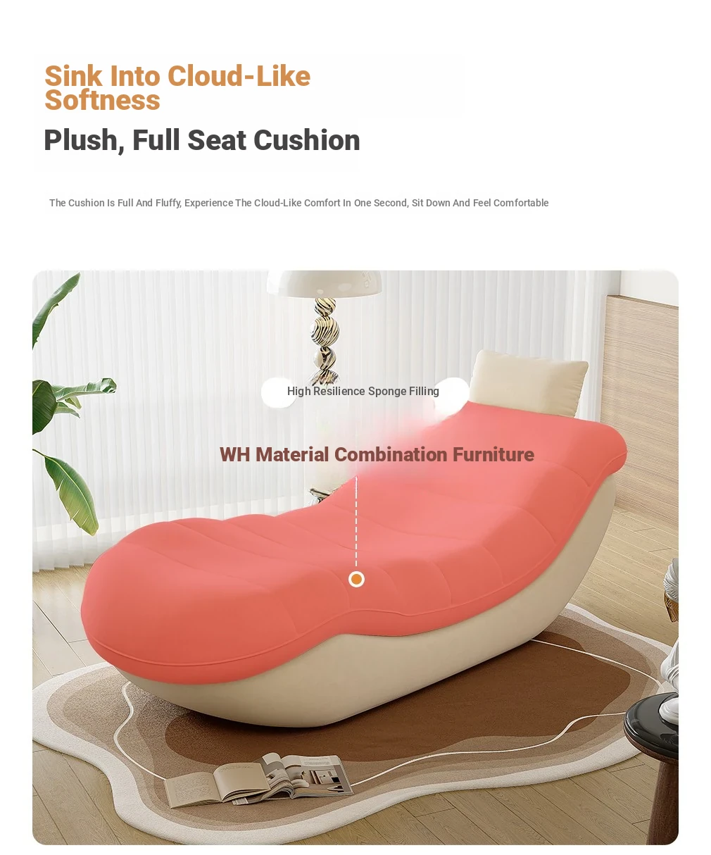 French Cream Soft Cat Paw Fabric Lazy Chair - Modern Minimalist Single Chaise Lounge for Living Room, Perfect for Relaxation and Comfort