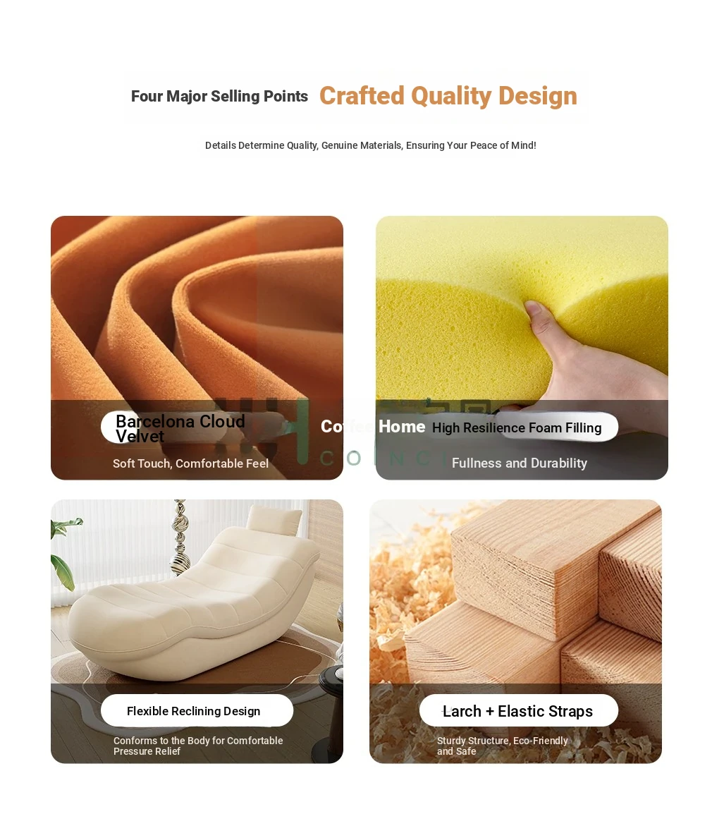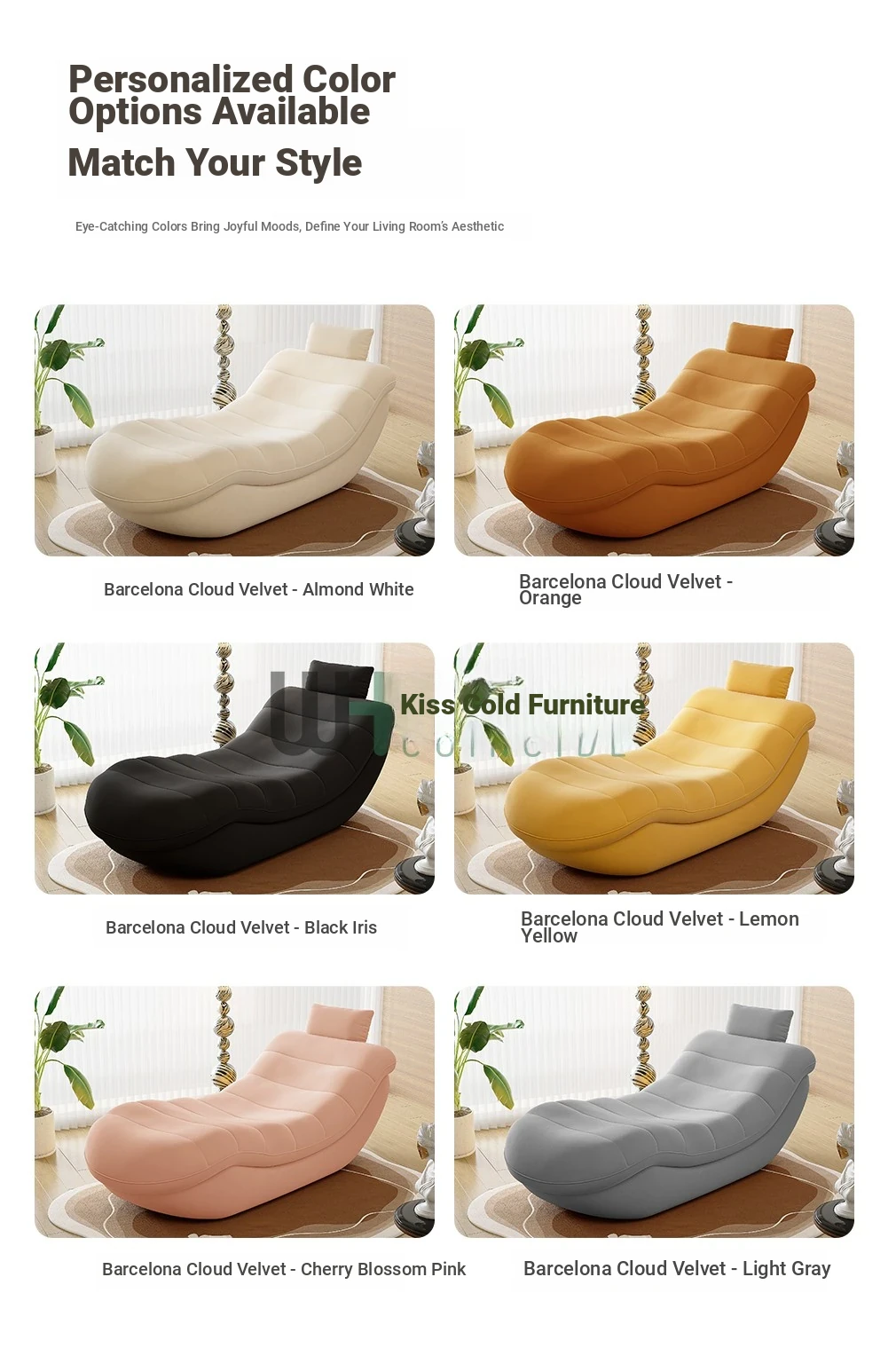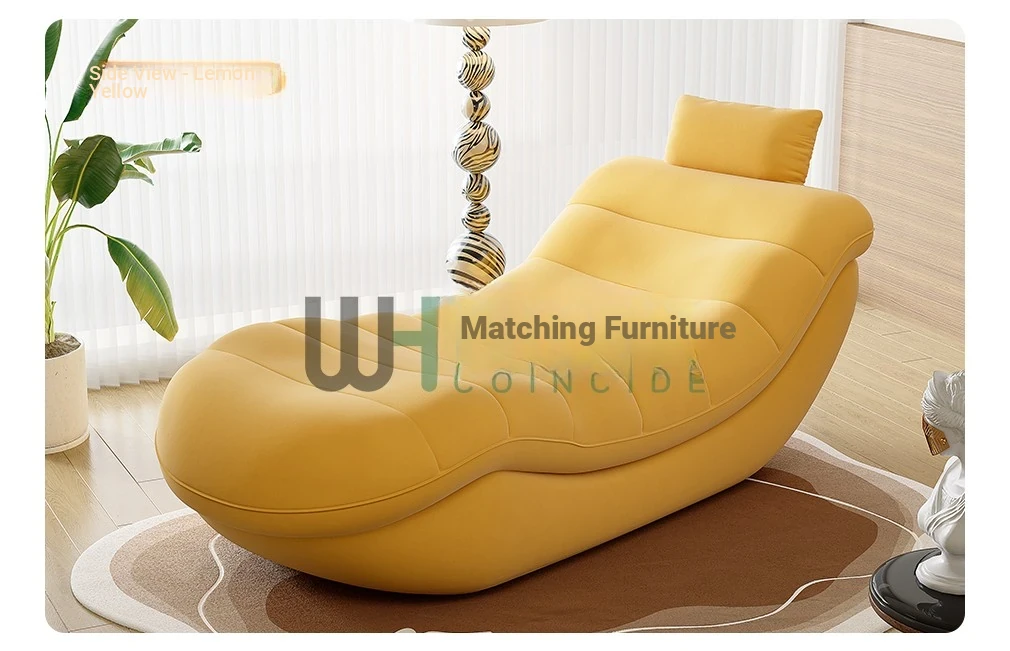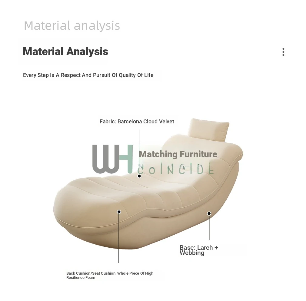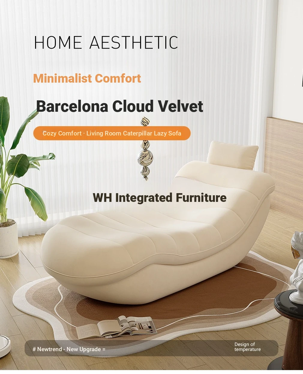 French Cream Soft Cat Paw Fabric Lazy Chair - Modern Minimalist Single Chaise Lounge for Living Room, Perfect for Relaxation and Comfort
