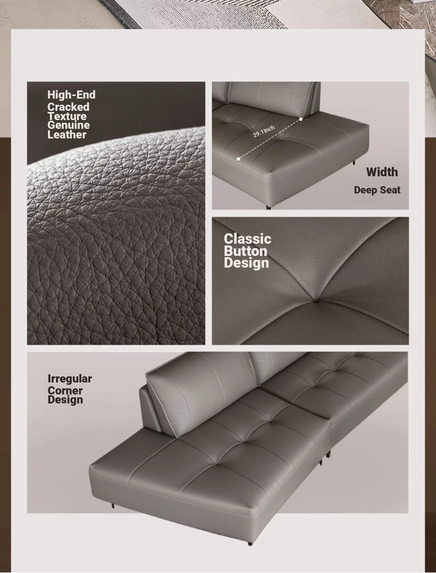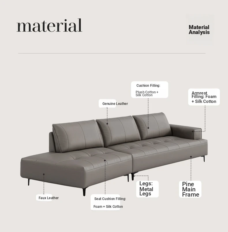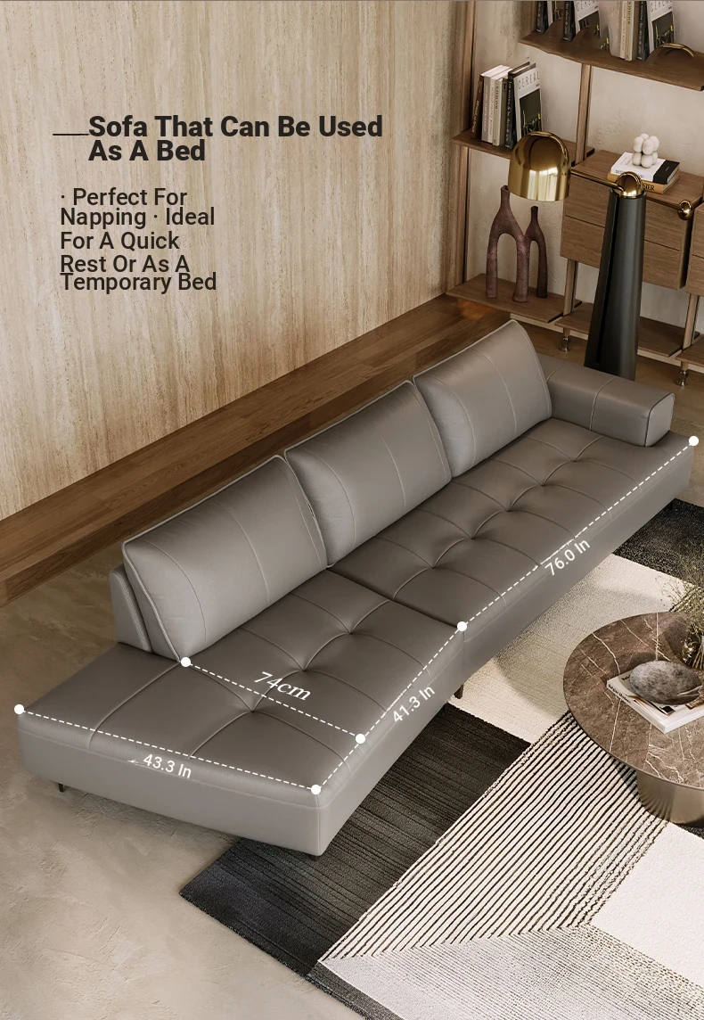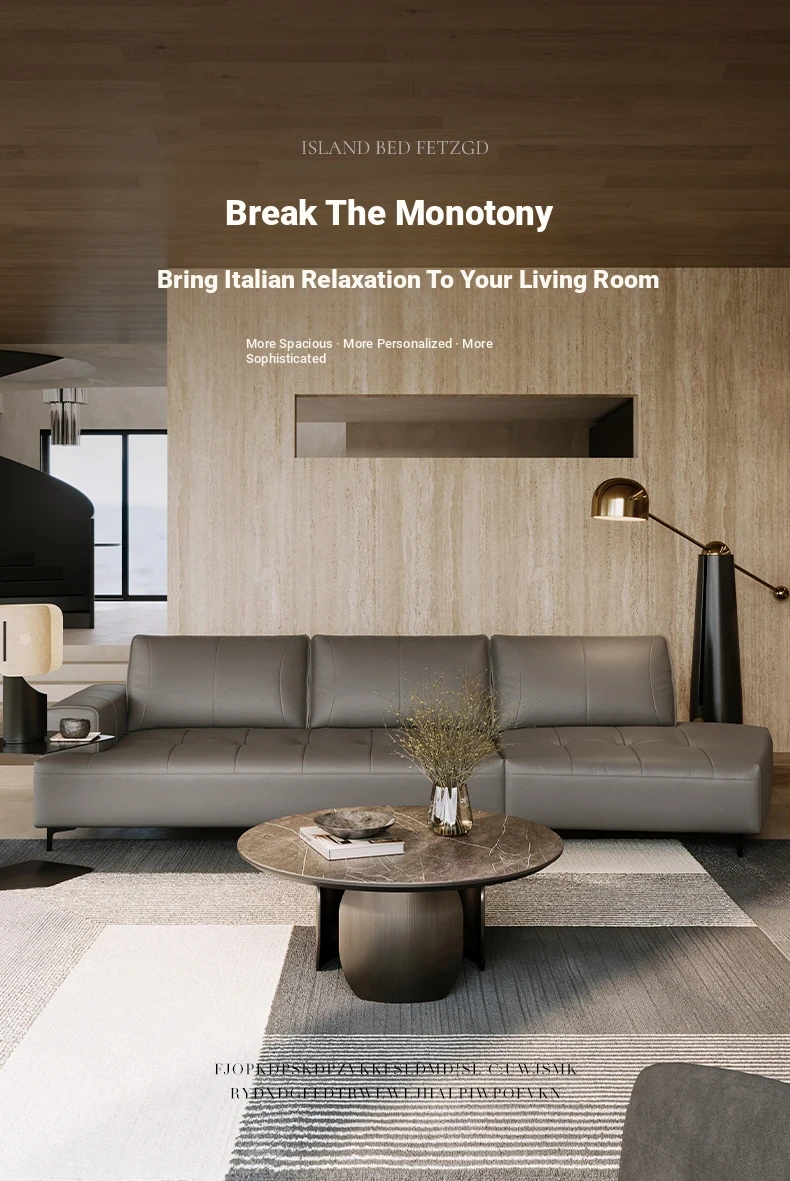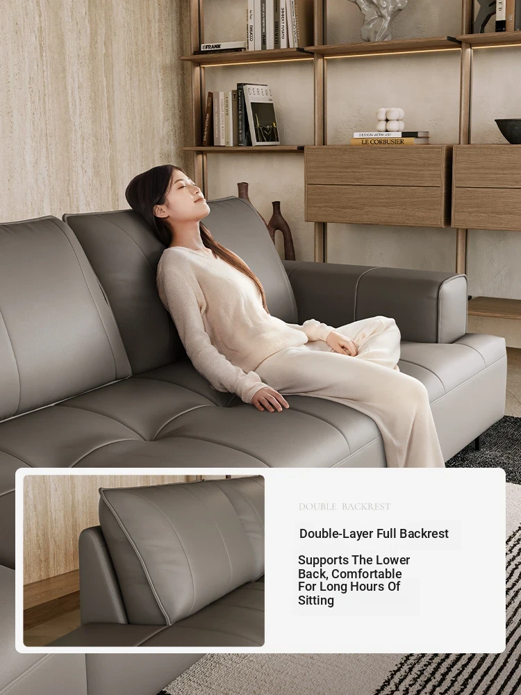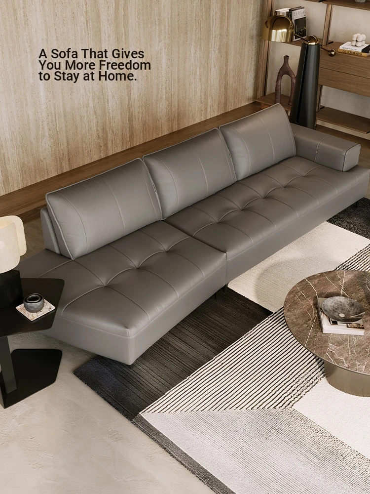 Luxury CBD Shaped Sofa - Italian Minimalist Genuine Leather Couch in Top Grain Cowhide for Spacious Living Rooms - Perfect Blend of Style and Comfort