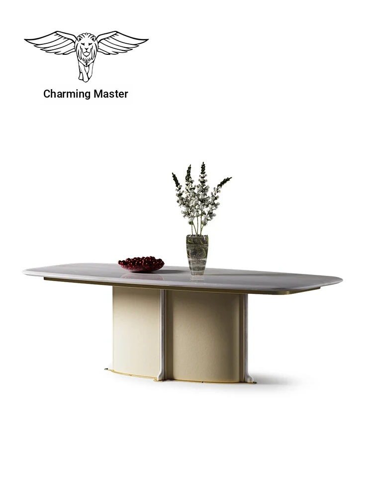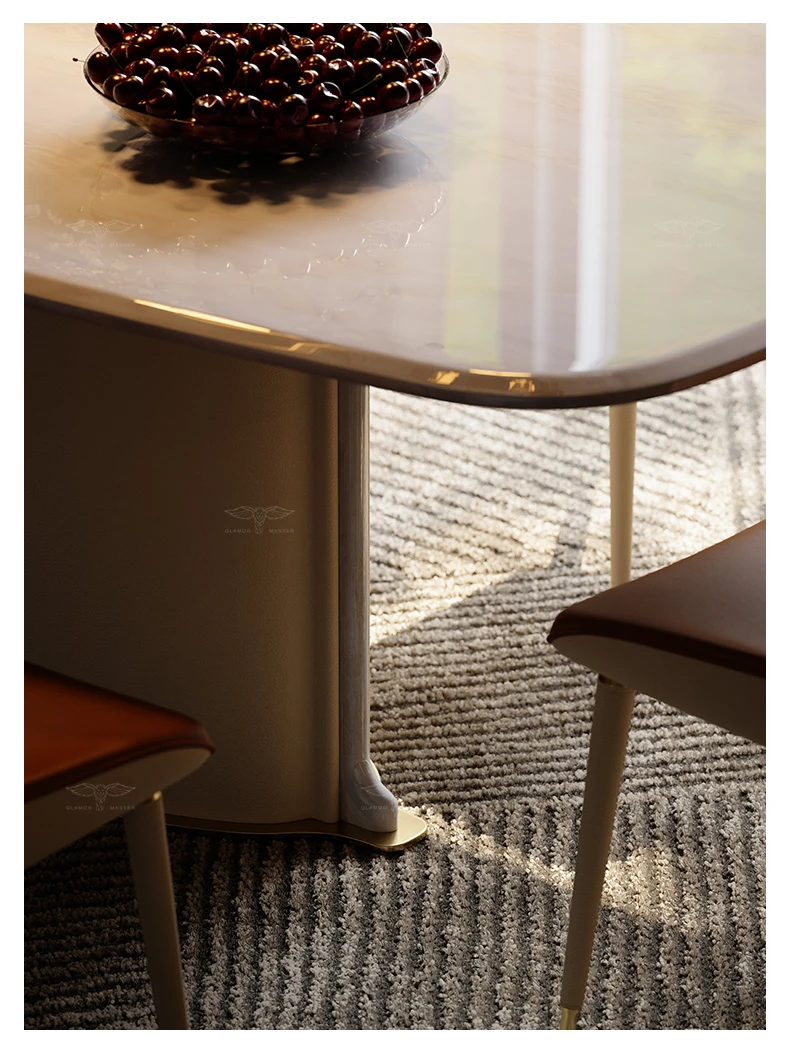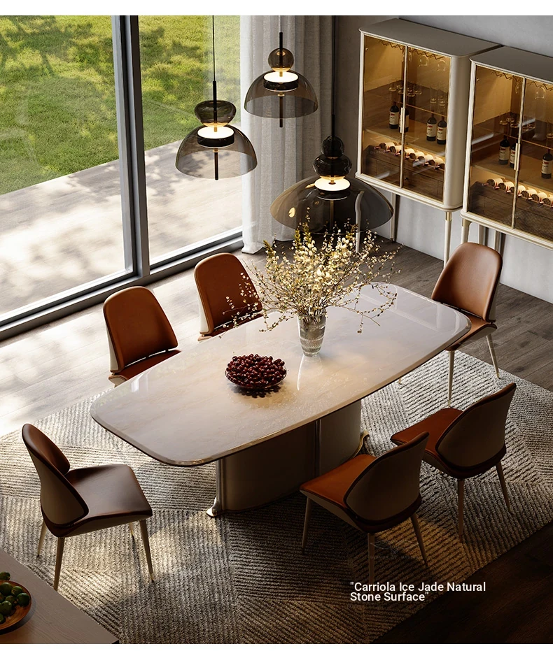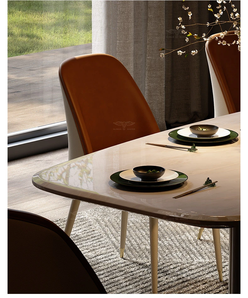 Masterful Charm: Luxurious Natural Marble Dining Table Set for Villas - Elegant Long Dining Table with Chairs for Home and Restaurant