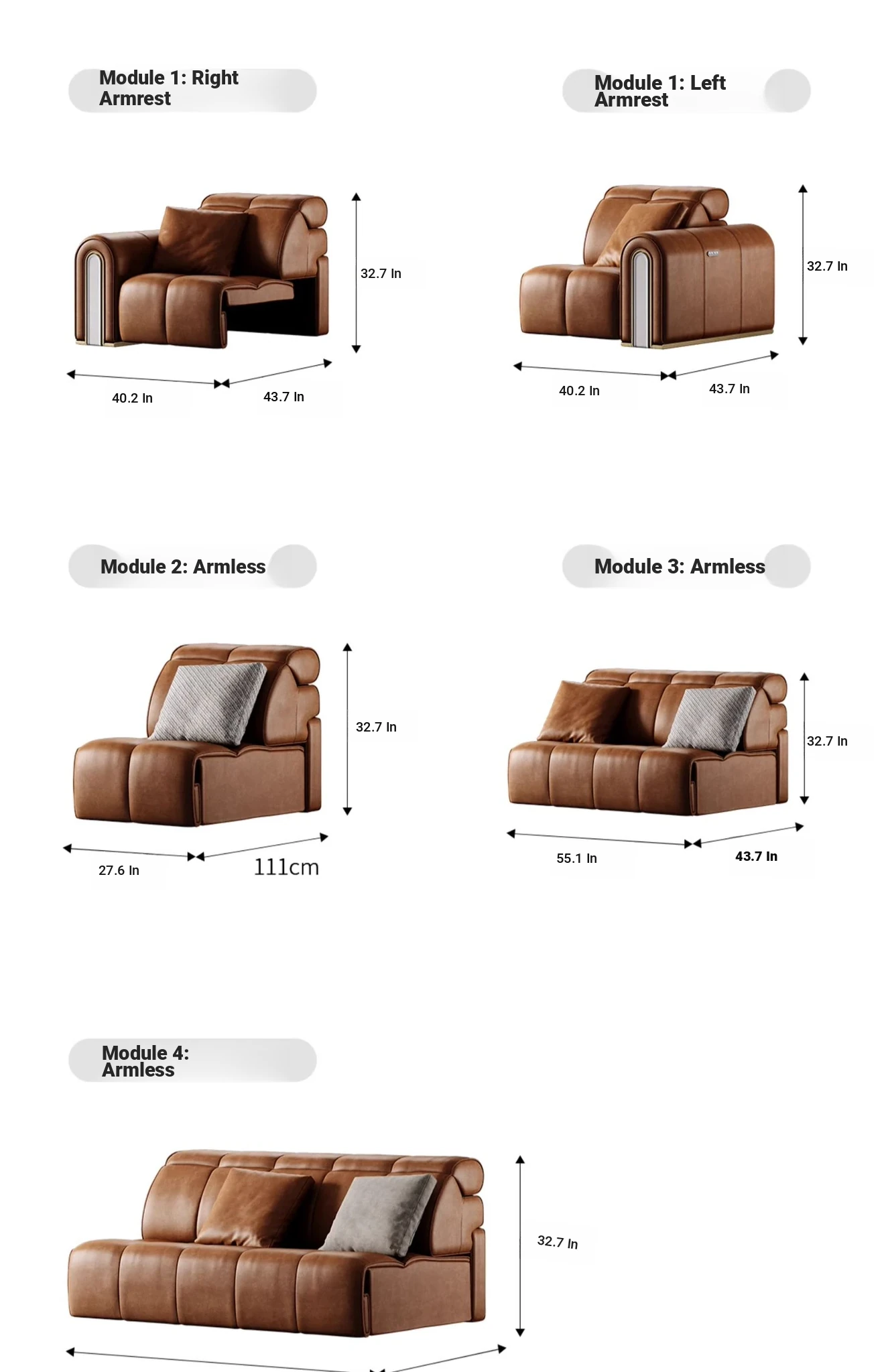 Triumph Function Sofa/Module ① ② ①/S Class Full Leather/Cary Icejade