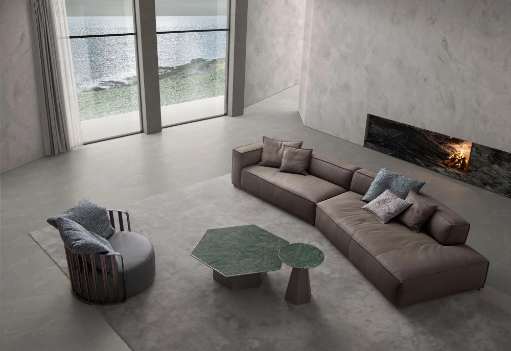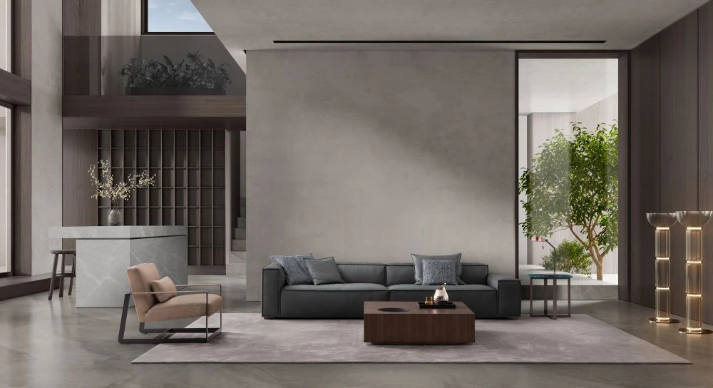 M°naca Italian Minimalist Genuine Leather Sofa - Modern Luxury Designer Piece for Villa Living Room