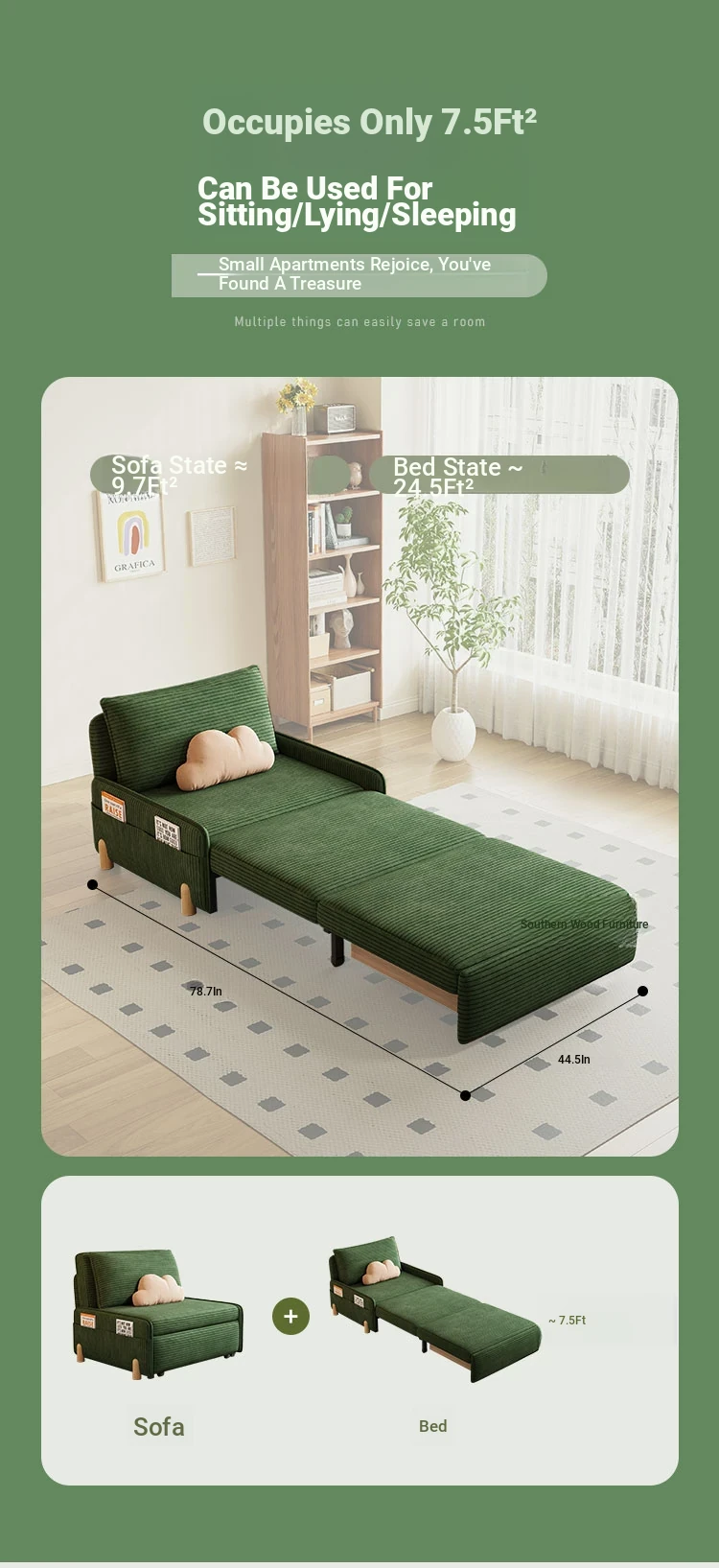 Total width 75.98 in sponge-with storage