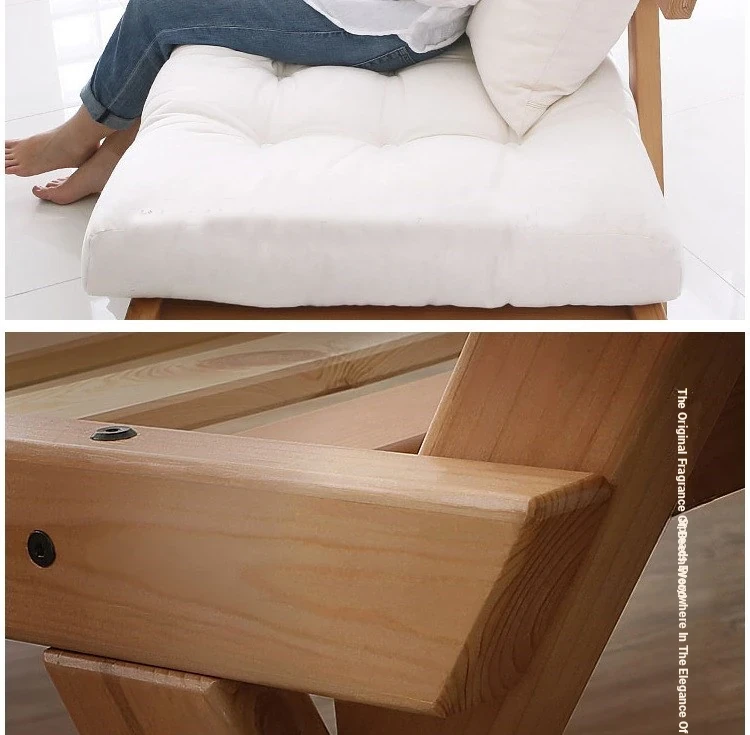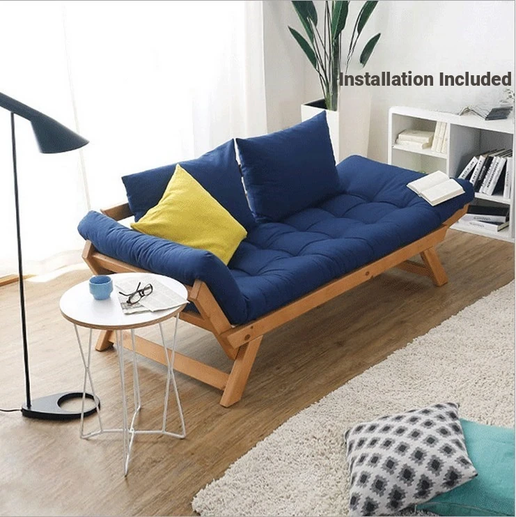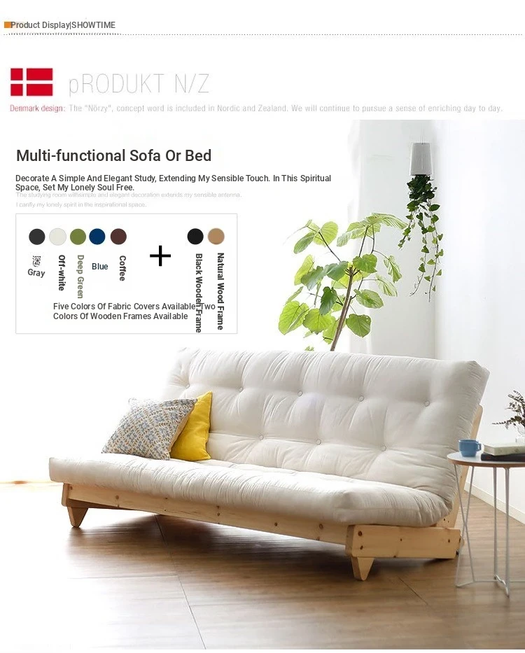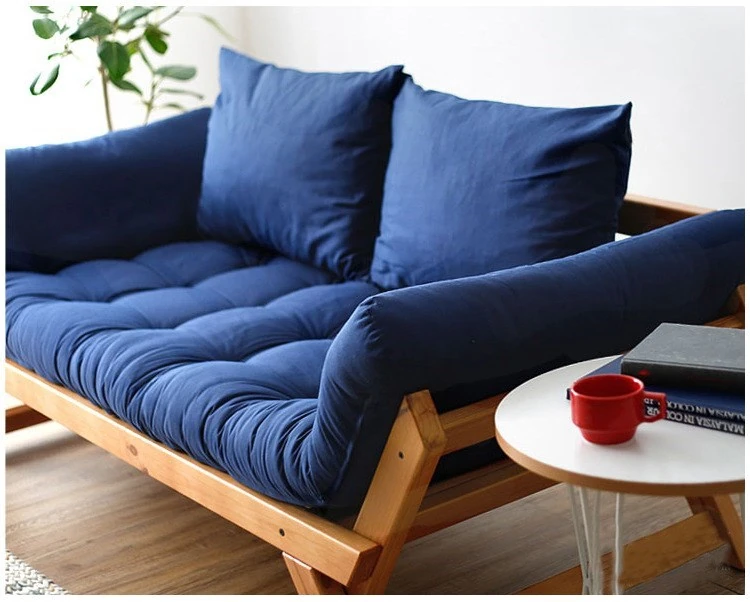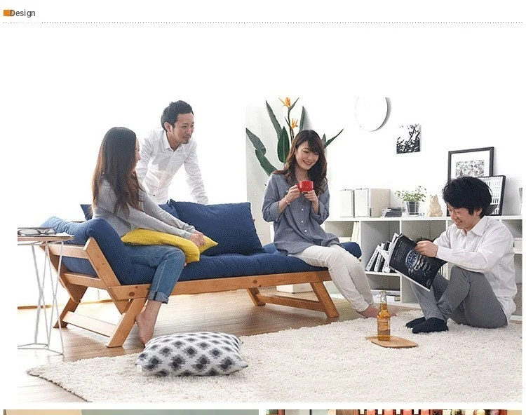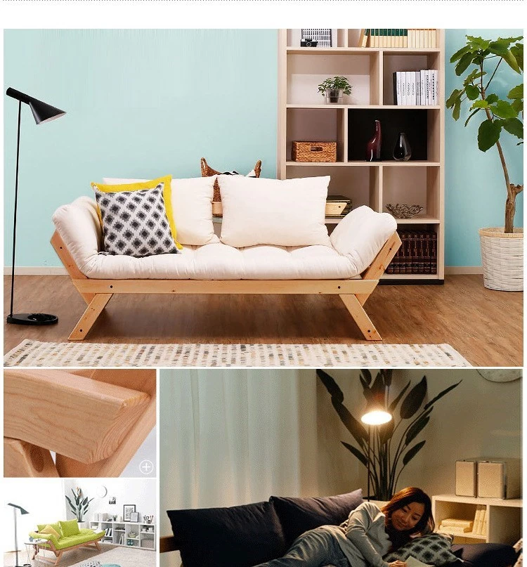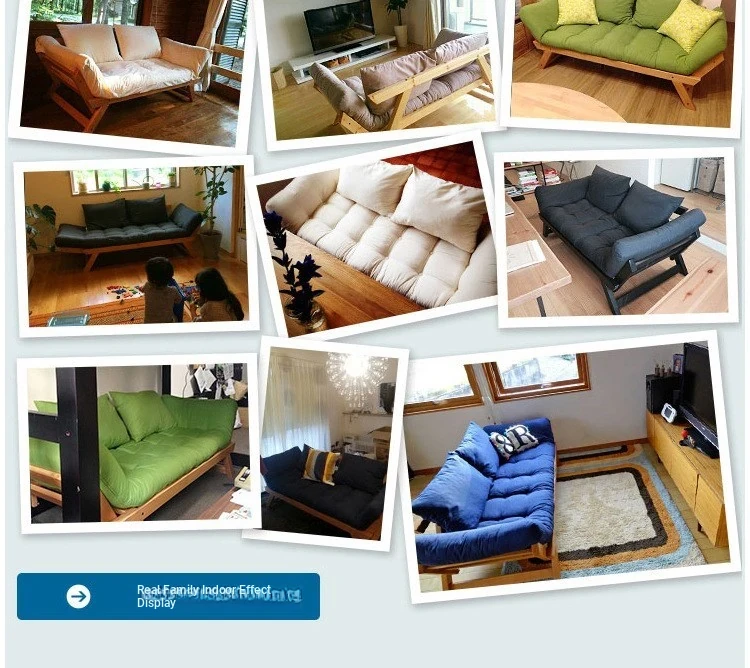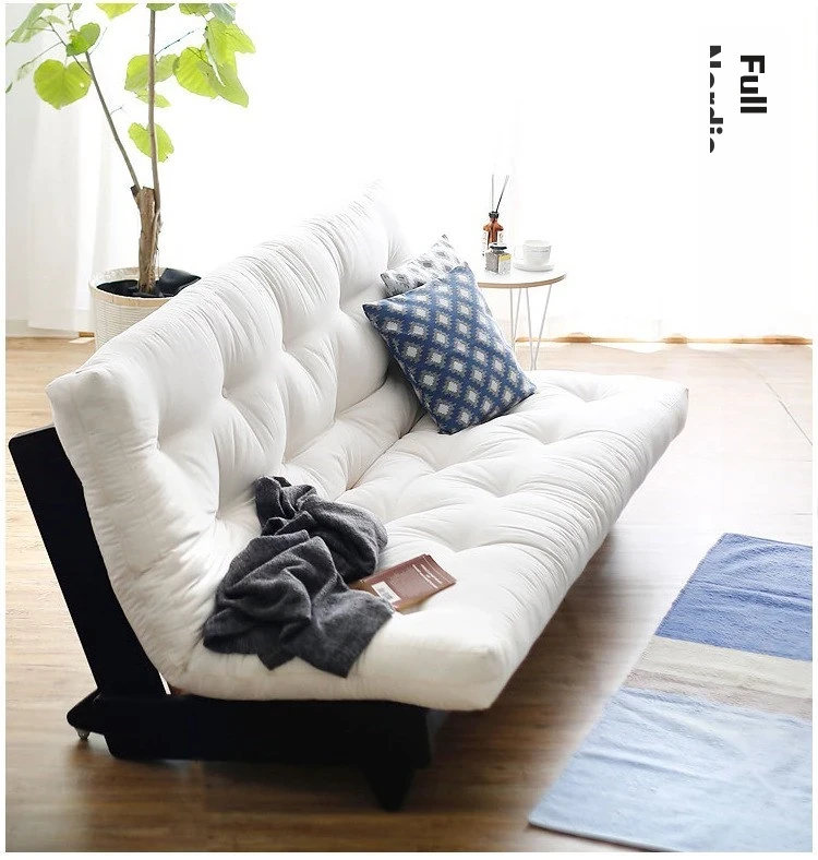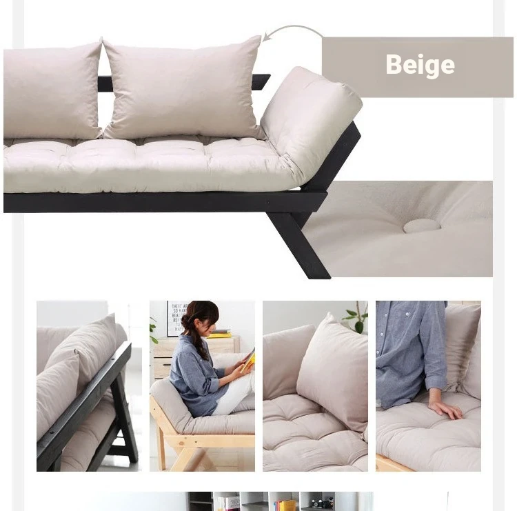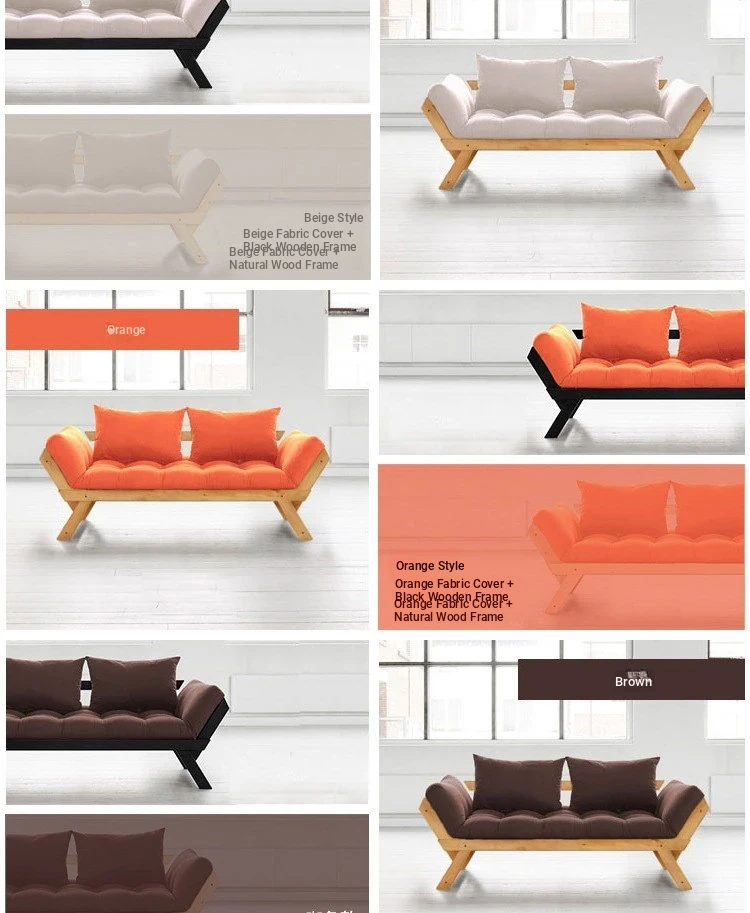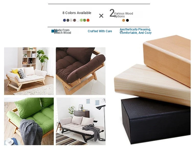 Nordic Japanese Style Foldable Solid Wood Sofa Bed - Multi-Functional for Small Spaces, Perfect for Single or Double Use in Your Living Room
