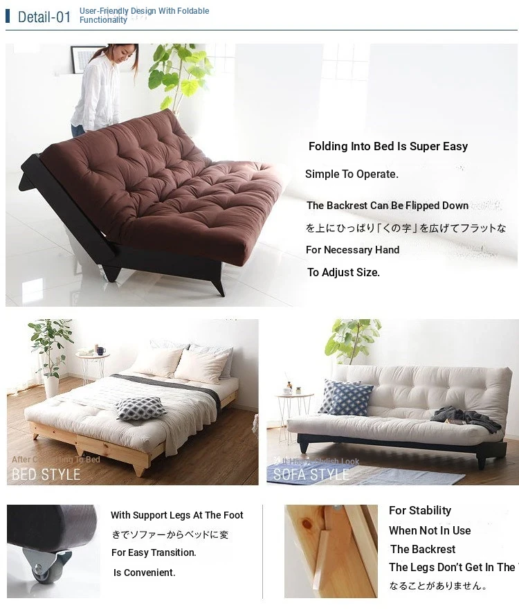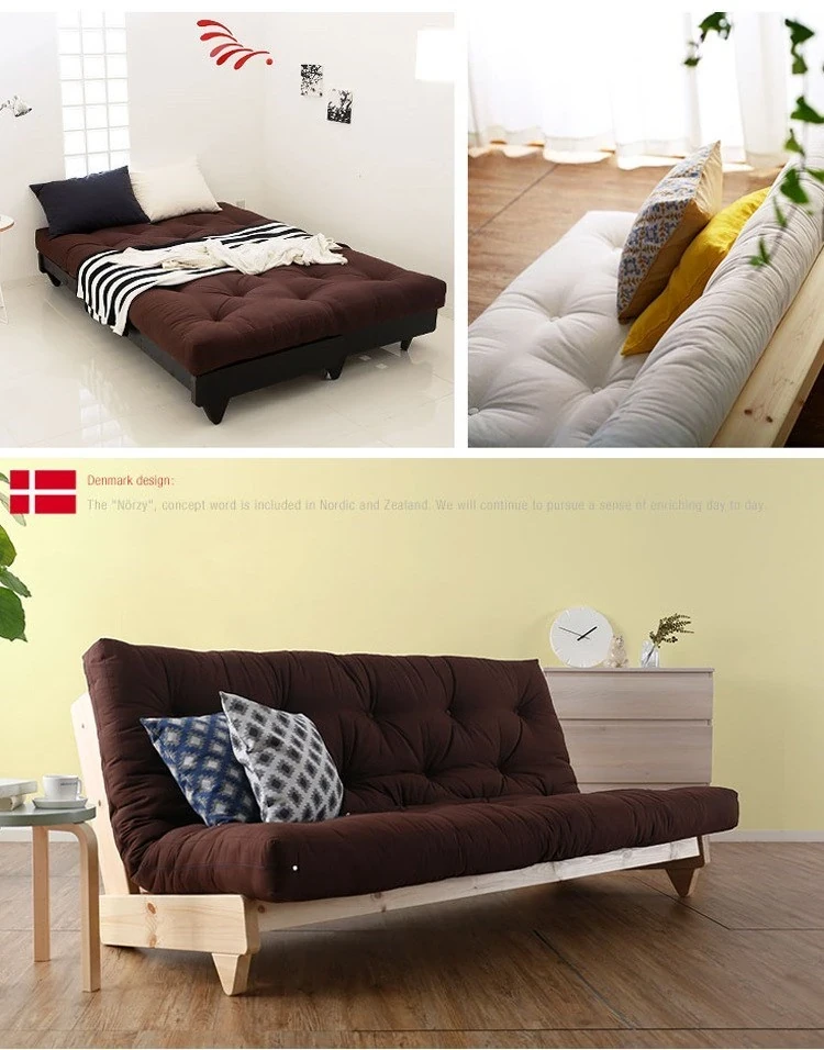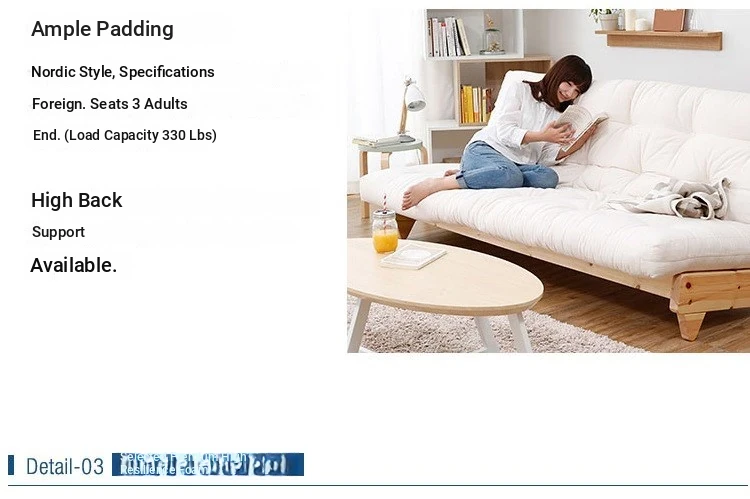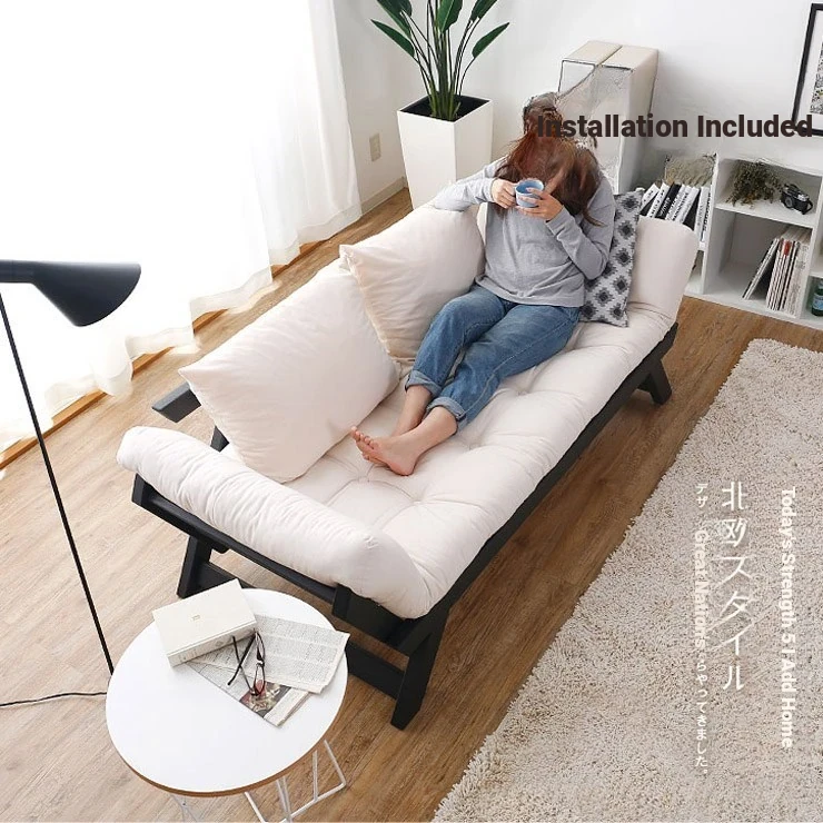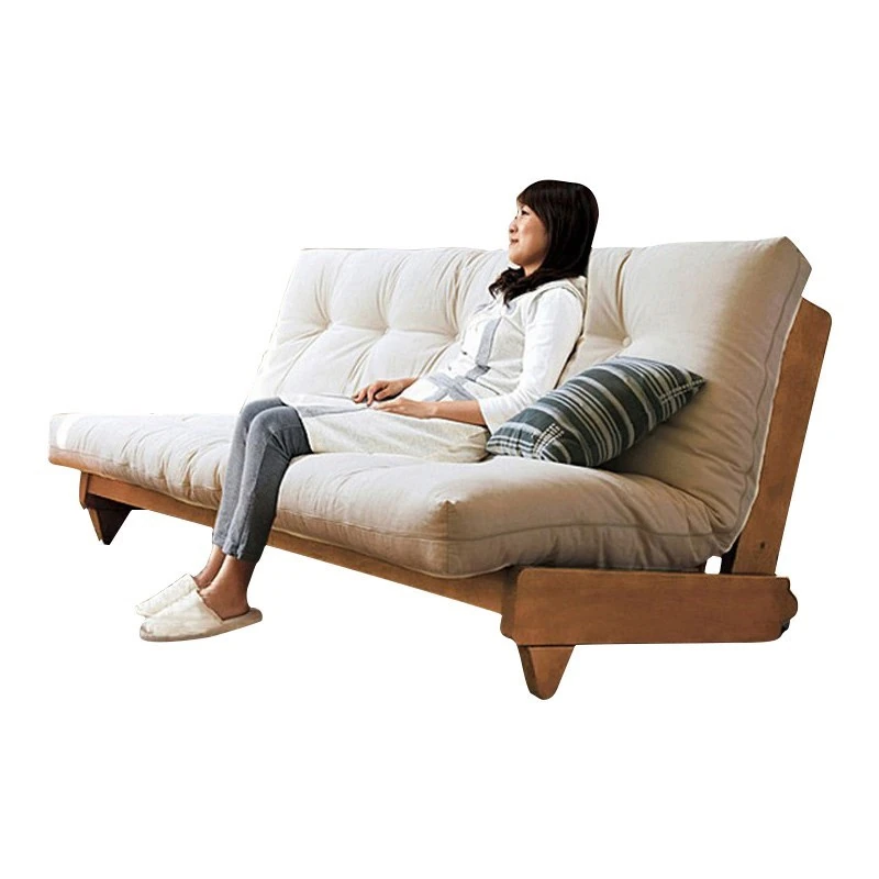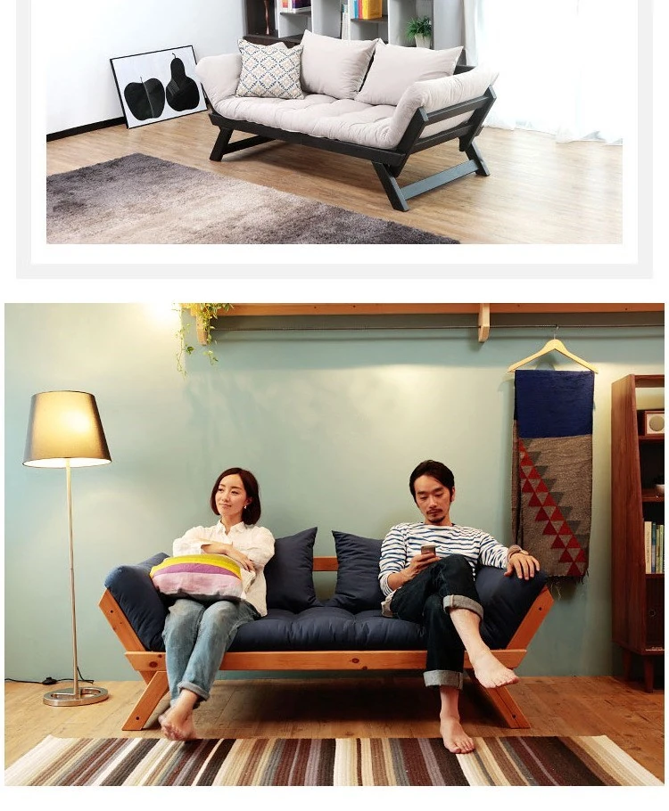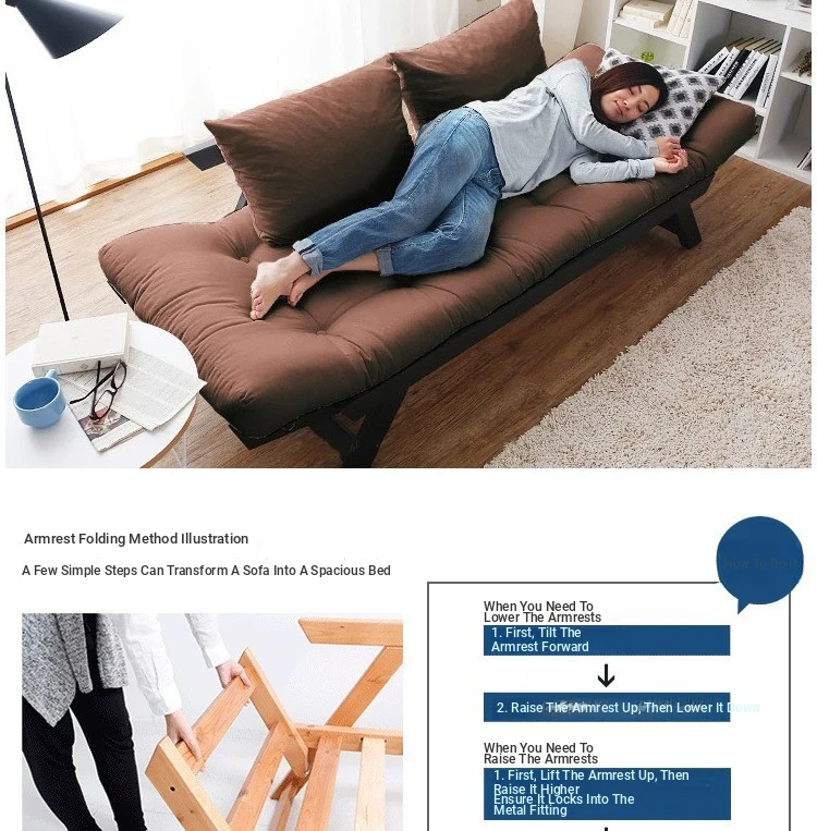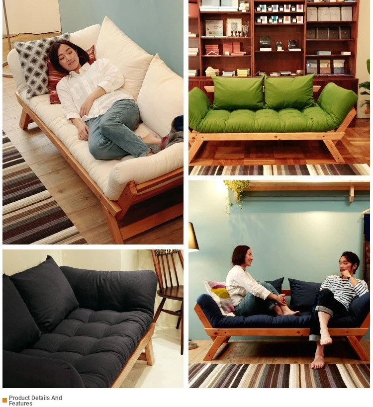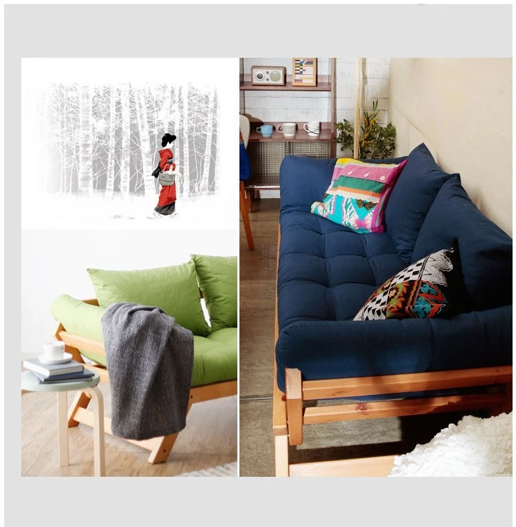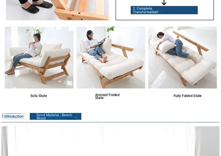 Nordic Japanese Style Foldable Solid Wood Sofa Bed - Multi-Functional for Small Spaces, Perfect for Single or Double Use in Your Living Room