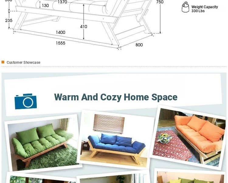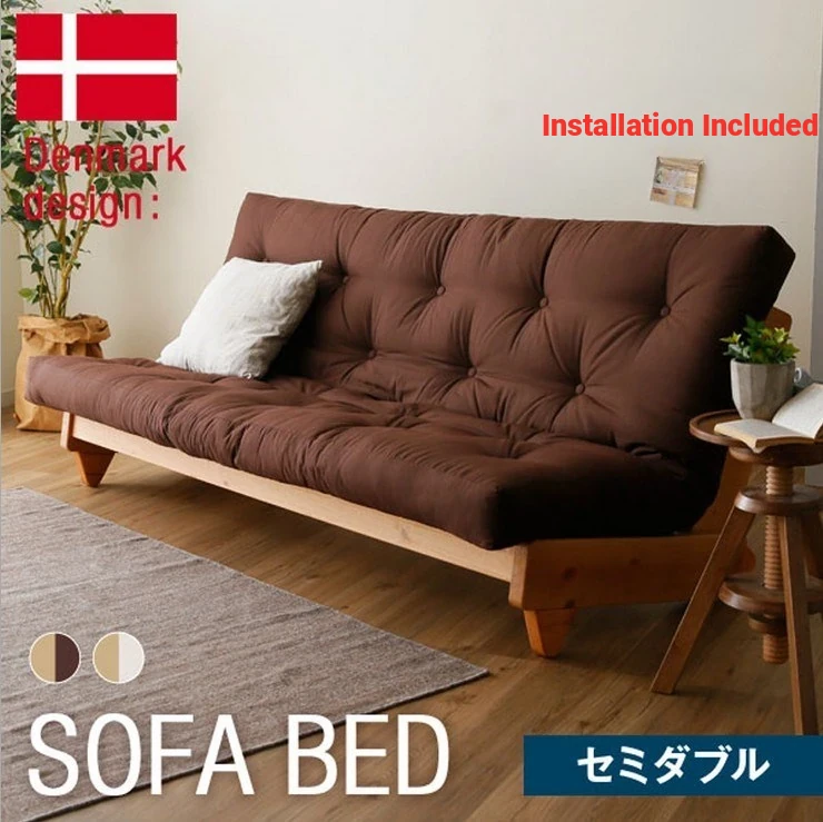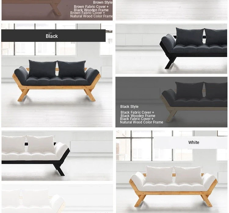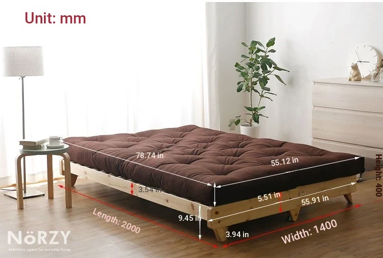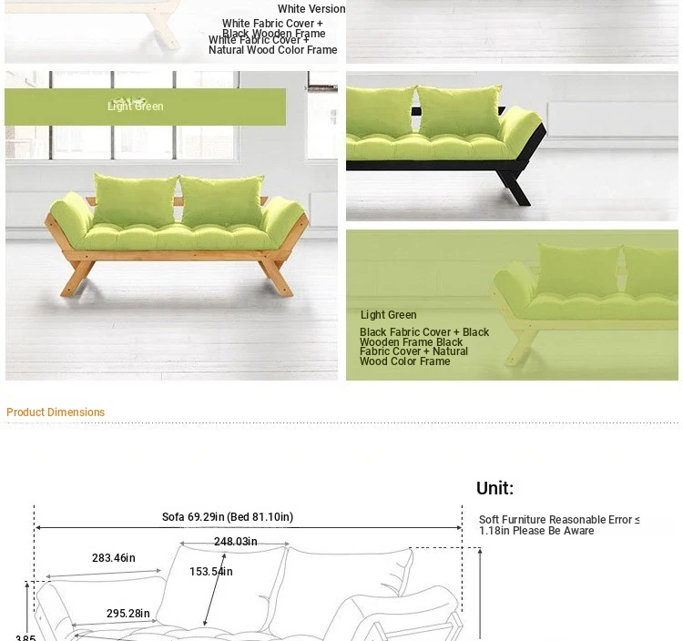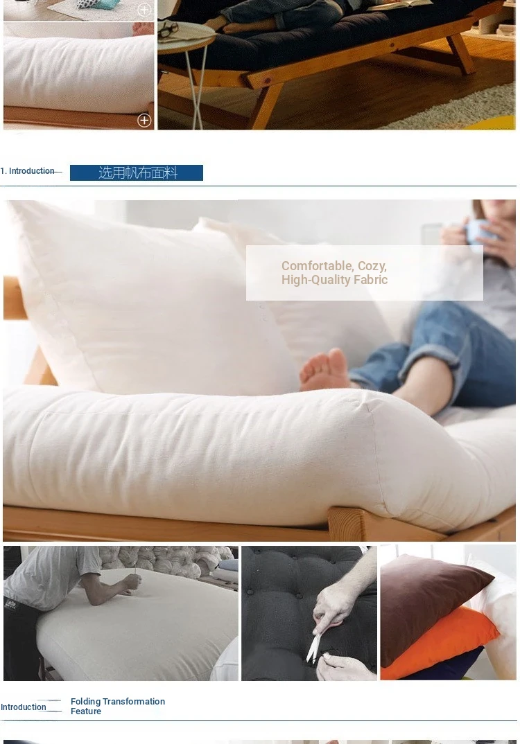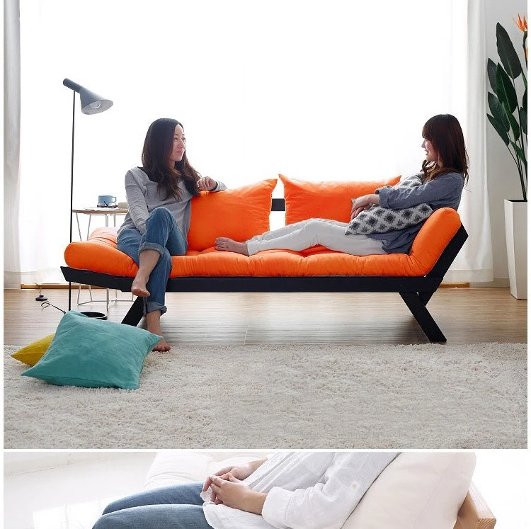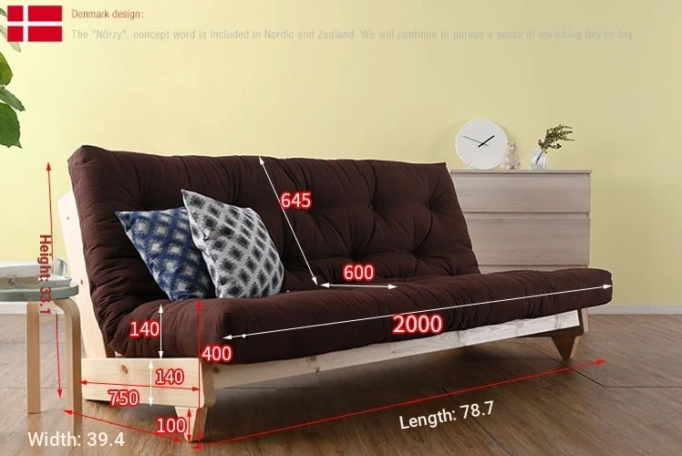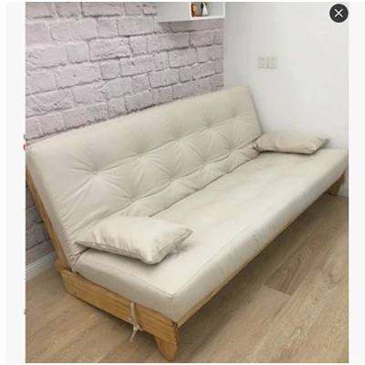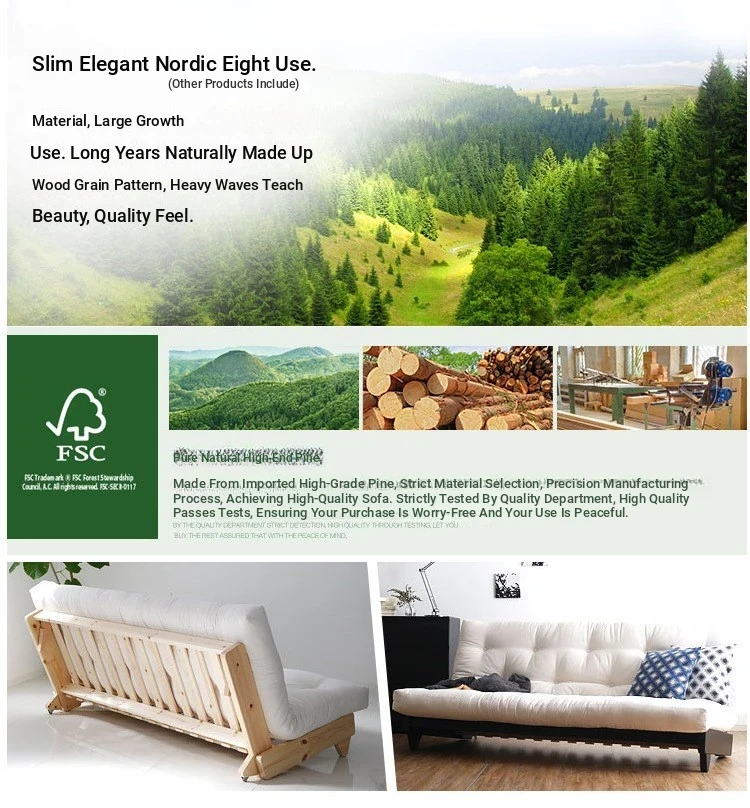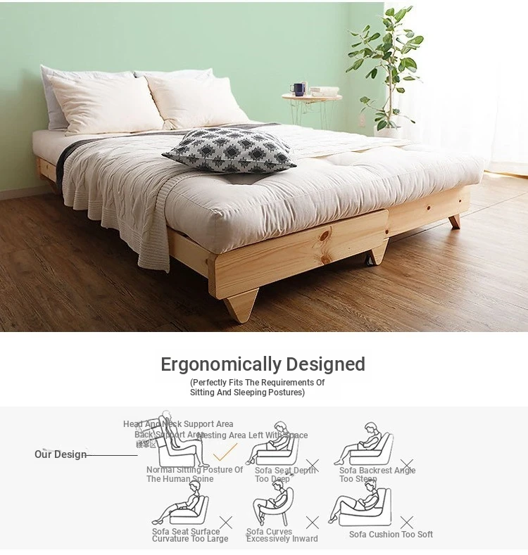 Nordic Japanese Style Foldable Solid Wood Sofa Bed - Multi-Functional for Small Spaces, Perfect for Single or Double Use in Your Living Room