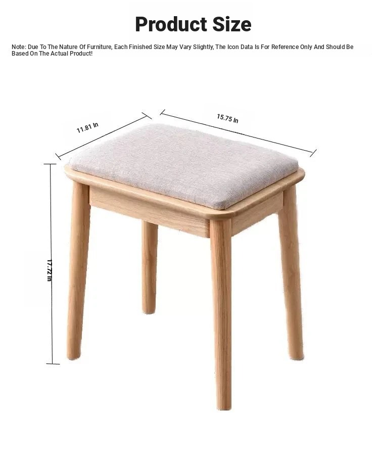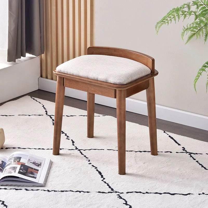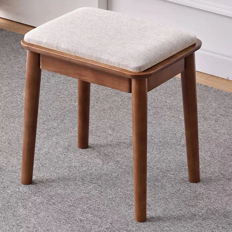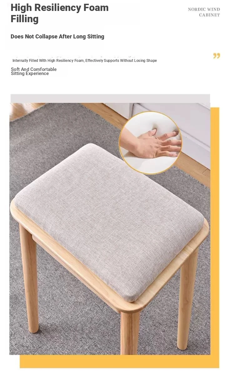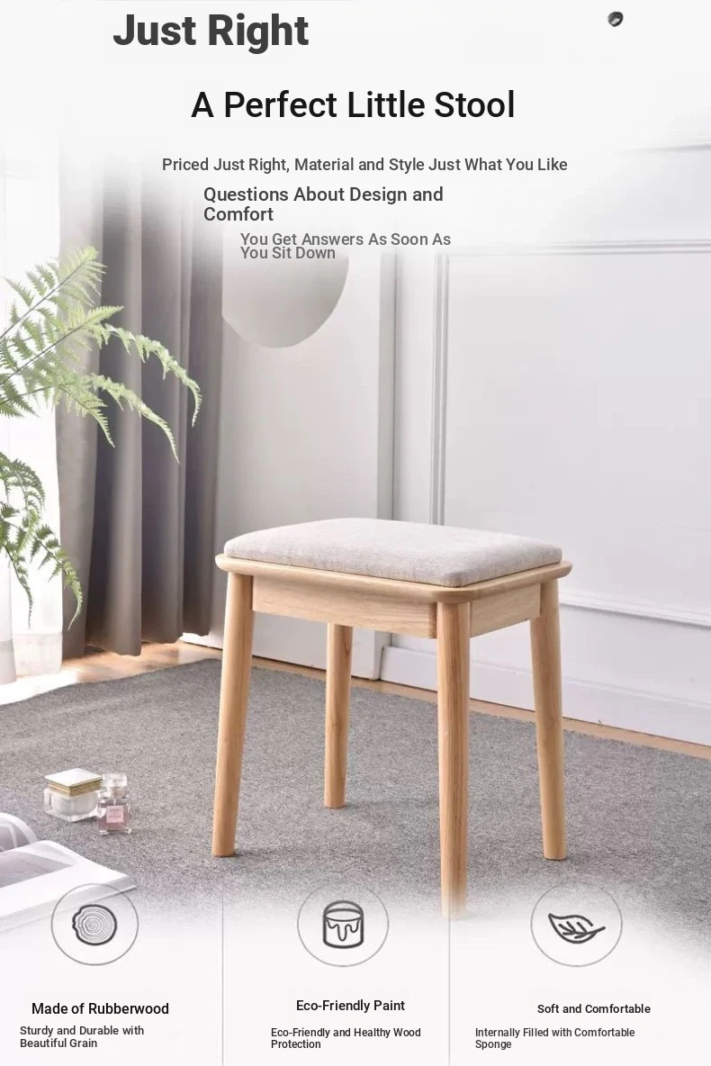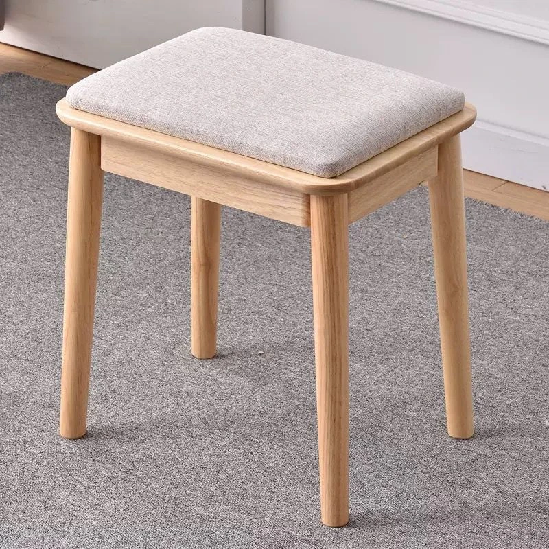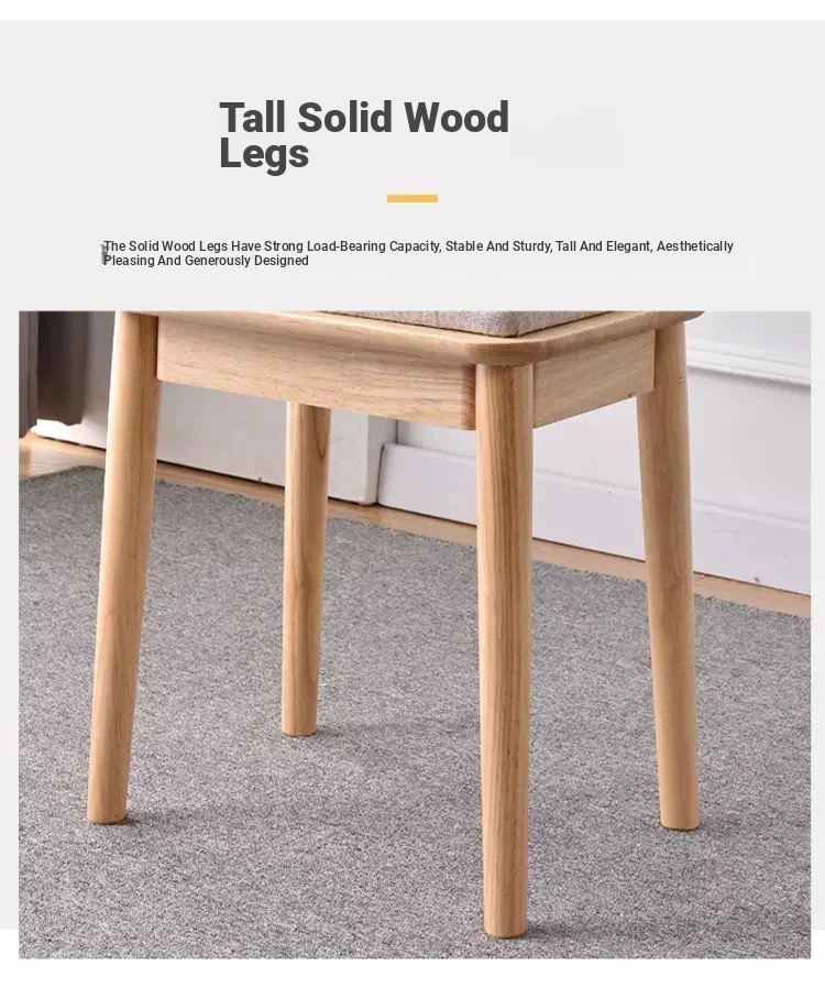 Nordic Solid Wood Vanity Stool – Stylish and Minimalist Makeup Chair for Bedroom, Trendy Soft-Padded Dining and Desk Stool for Home Use