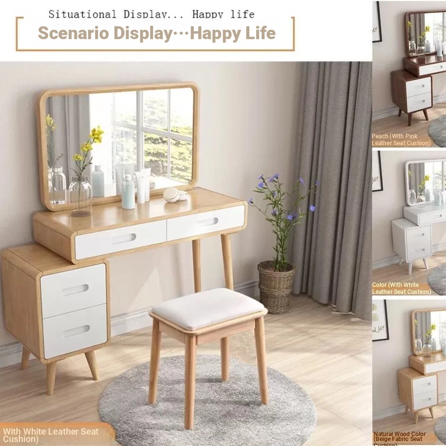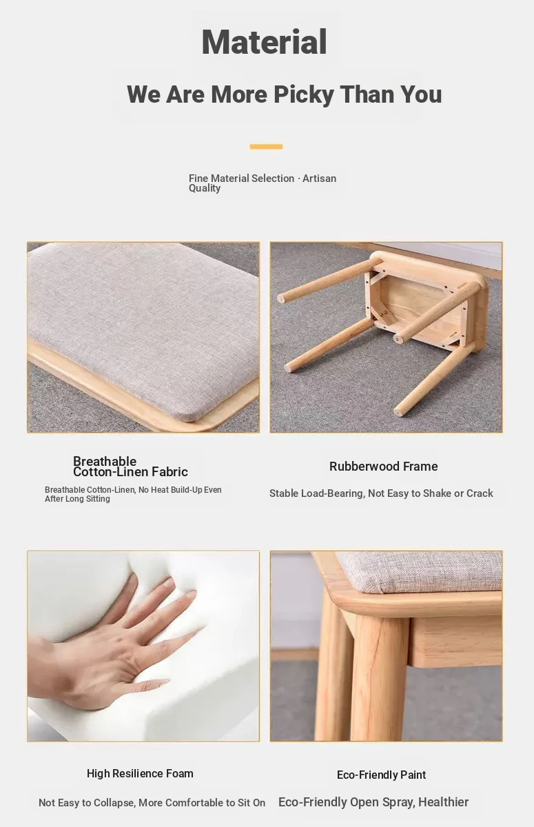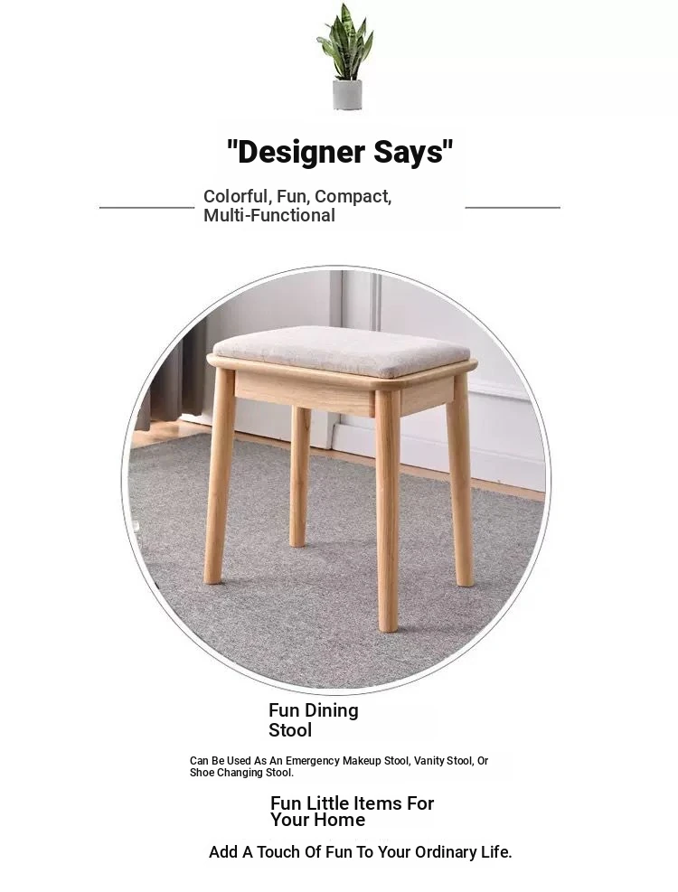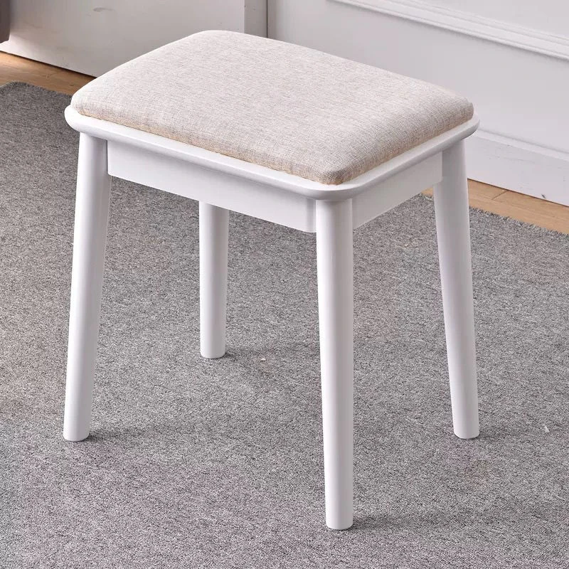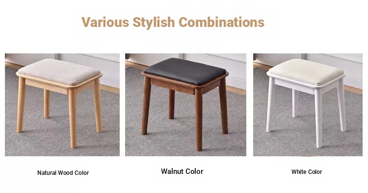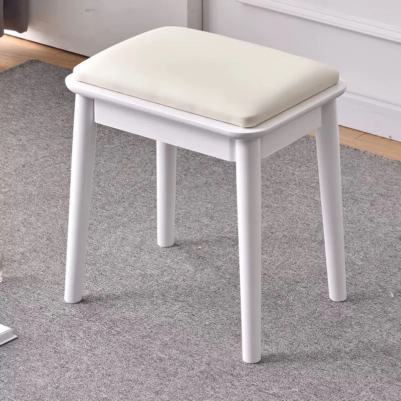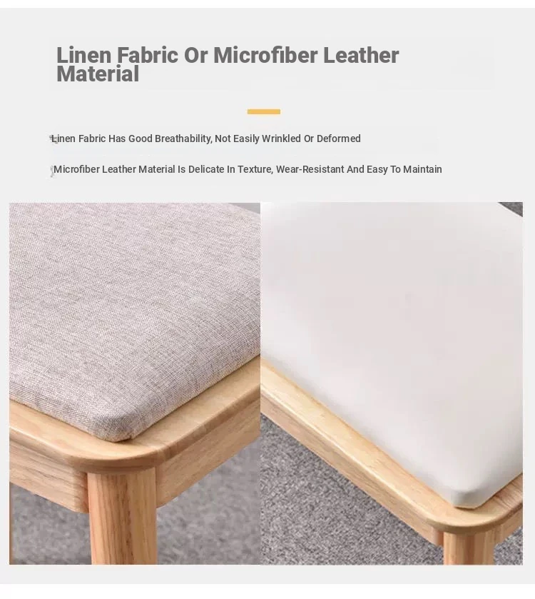 Nordic Solid Wood Vanity Stool – Stylish and Minimalist Makeup Chair for Bedroom, Trendy Soft-Padded Dining and Desk Stool for Home Use
