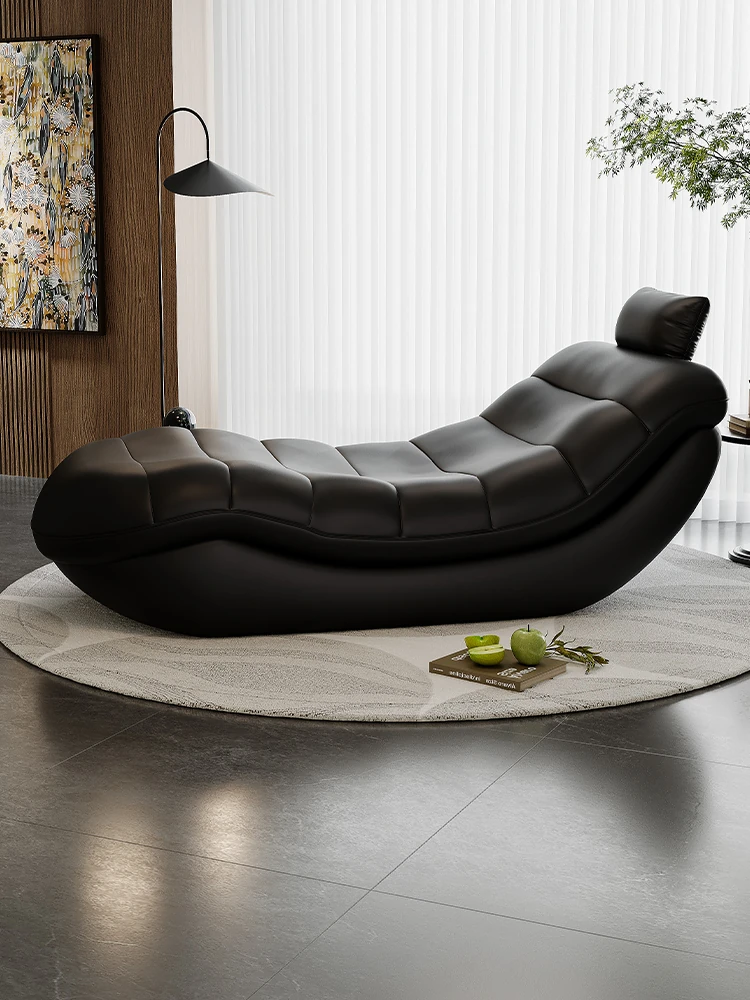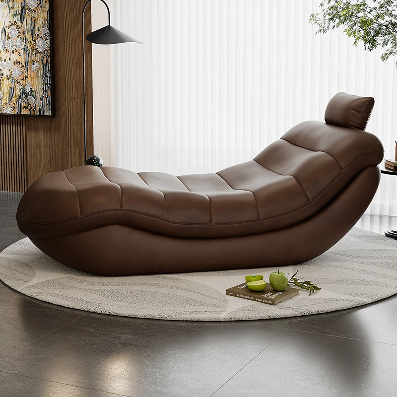 Vintage Genuine Leather Lazy Sofa Rocking Chair - 2025 New Designer Model for Living Room, Hotel, and Balcony - Stylish Single Leisure Chair