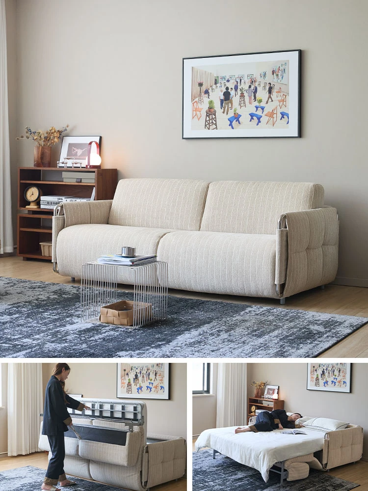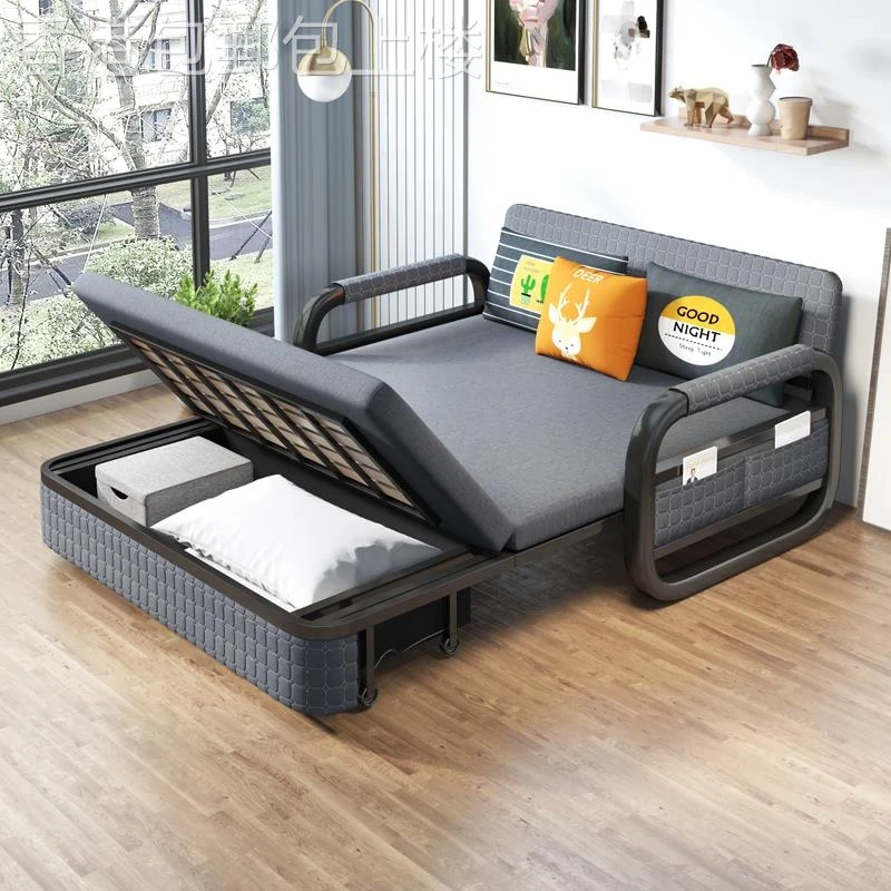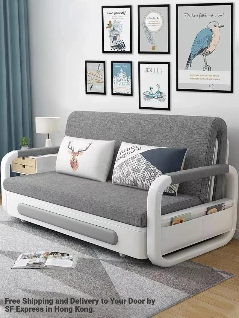 【Free Shipping in Hong Kong】Foldable Fabric Sofa Bed with Solid Wood Storage - Multi-Functional Couch for Small Living Rooms and Guest Areas