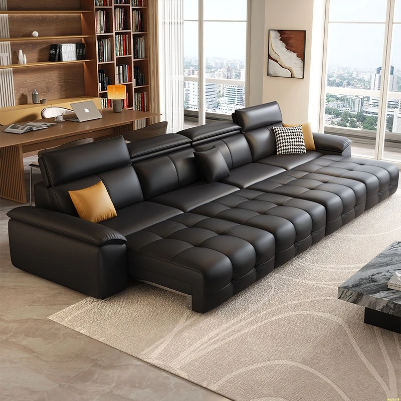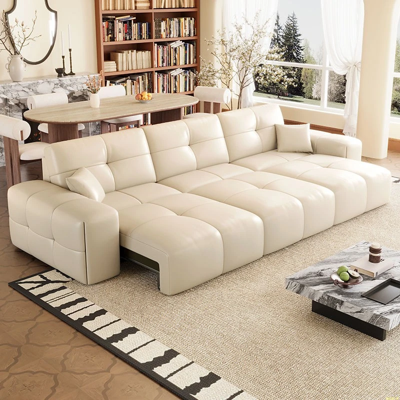 Premium Functional Genuine Leather Electric Sofa Bed – Versatile Three-Seater for Living Room, Easily Converts from Sofa to Bed with Adjustable and Retractable Design. Perfect for Comfort and Style!