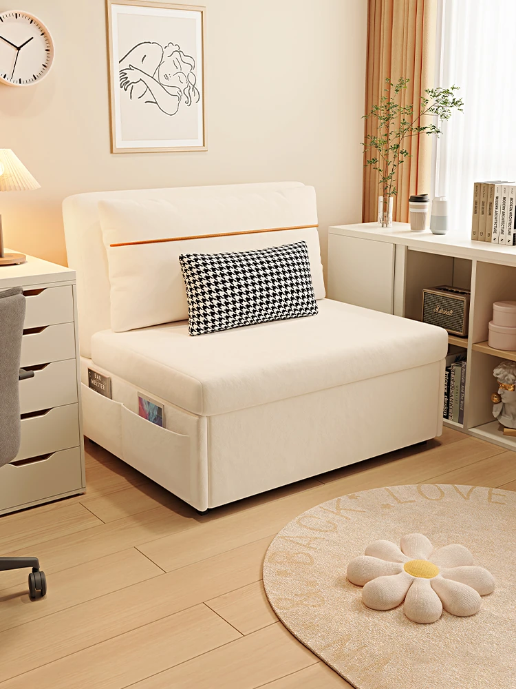 Nordic Cream Sofa Bed - Foldable, Waterproof Corduroy, Perfect for Small Spaces & Home Offices, Removable & Washable, Multi-functional Design
