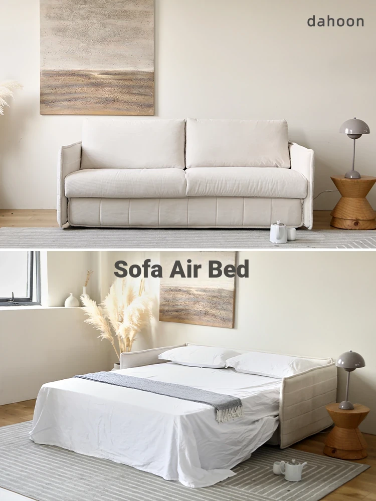 DAHOON Sea Salt Bauhaus Style Removable Fabric Sofa Bed – Foldable, Dual-Use, Stainless Steel Design for Small Spaces