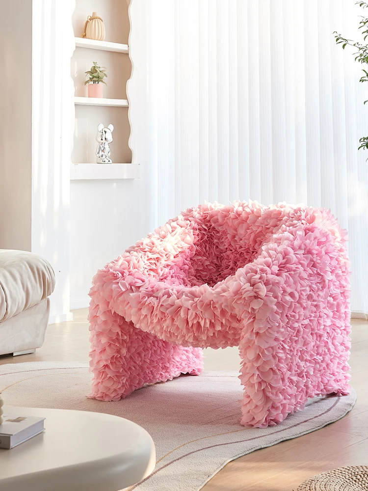 Designer Petal Chair - Creamy Pink Lazy Sofa for Living Room, Bedroom, and Balcony - Perfect for Trendy Boutiques and Cozy Spaces