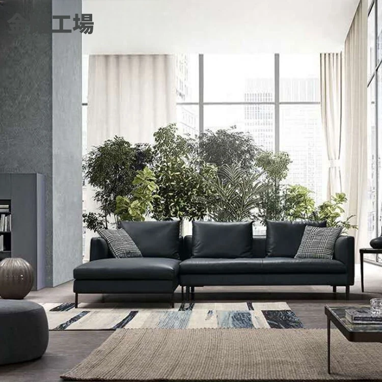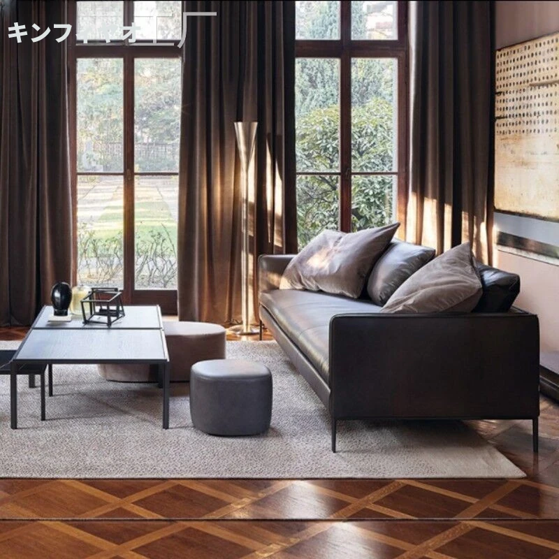 360度回転するミニマルデザインの本革ソファ!北欧風ナパ牛革使用、豪華な貴族スタイルのリビングルーム用コーナーソファセット。おしゃれで快適な空間を演出します!