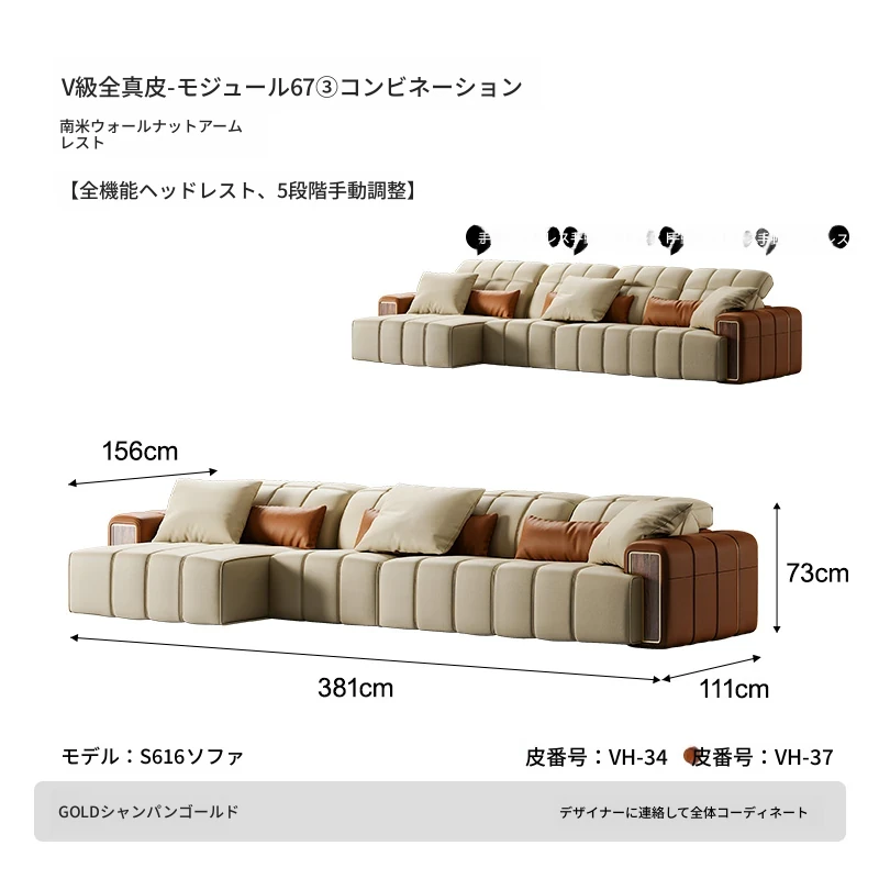 バッハ機能ソファ/⑥⑦③セット/V級全皮革