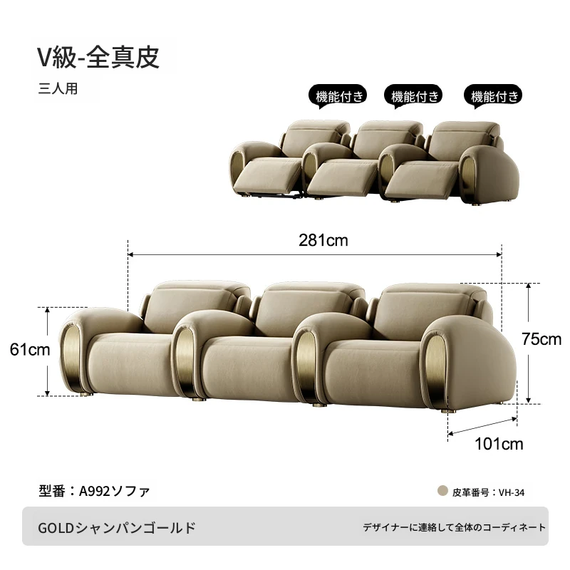 映画機能ソファ/三人用/南米クルミ木サイドテーブル/Sクラス全真皮革