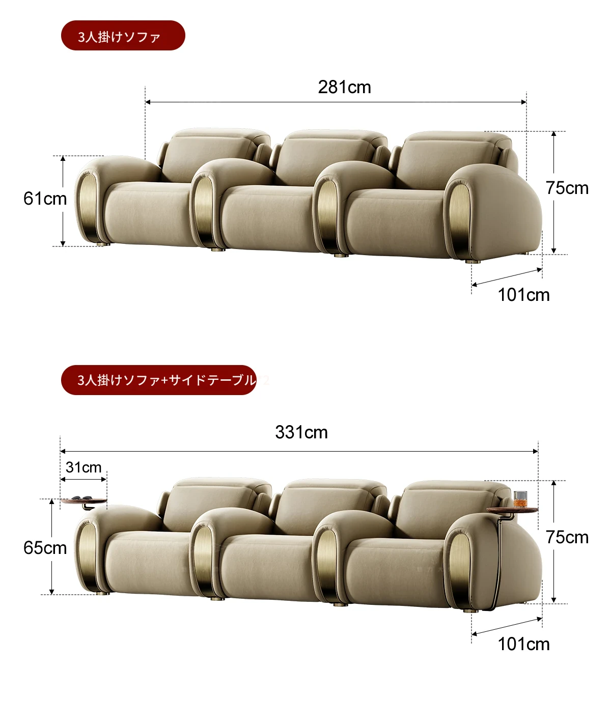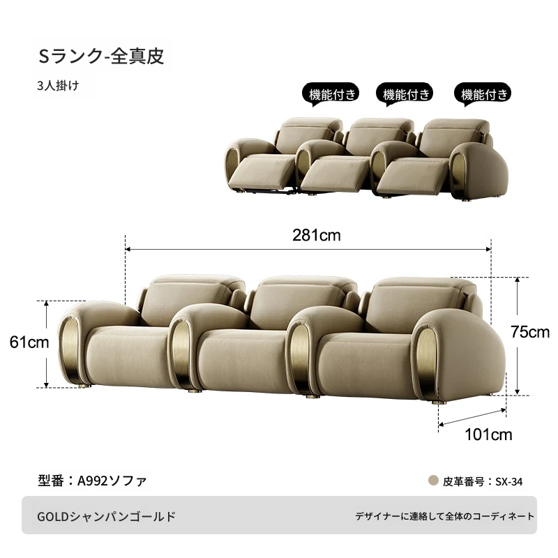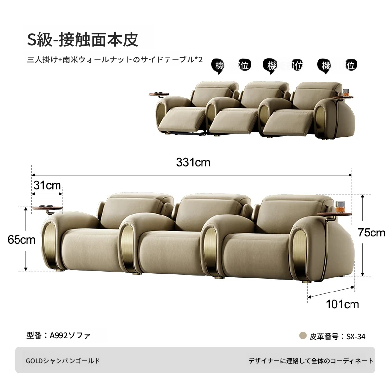 映画機能ソファ/三人用/南米クルミ木サイドテーブル/Sクラス半皮革