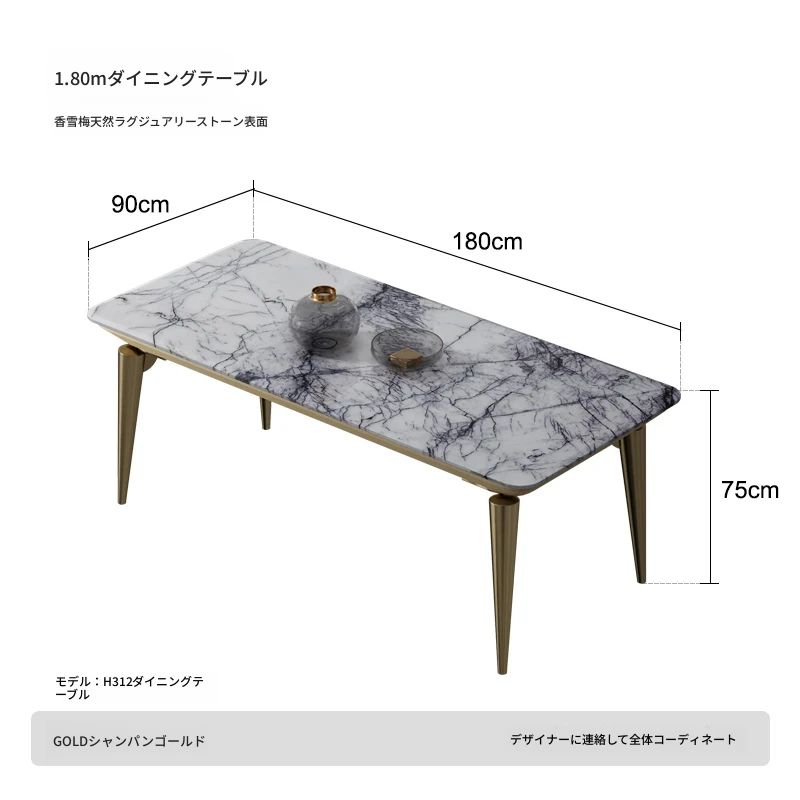 ダイニングテーブル/1.8M/香雪梅天然石/シャンパンゴールド