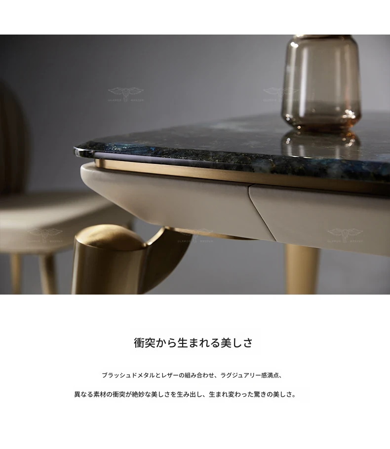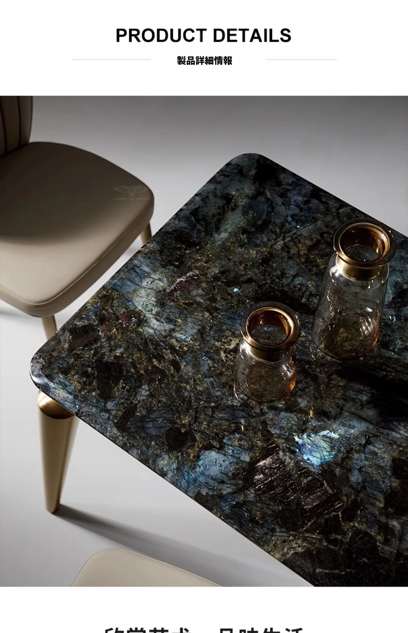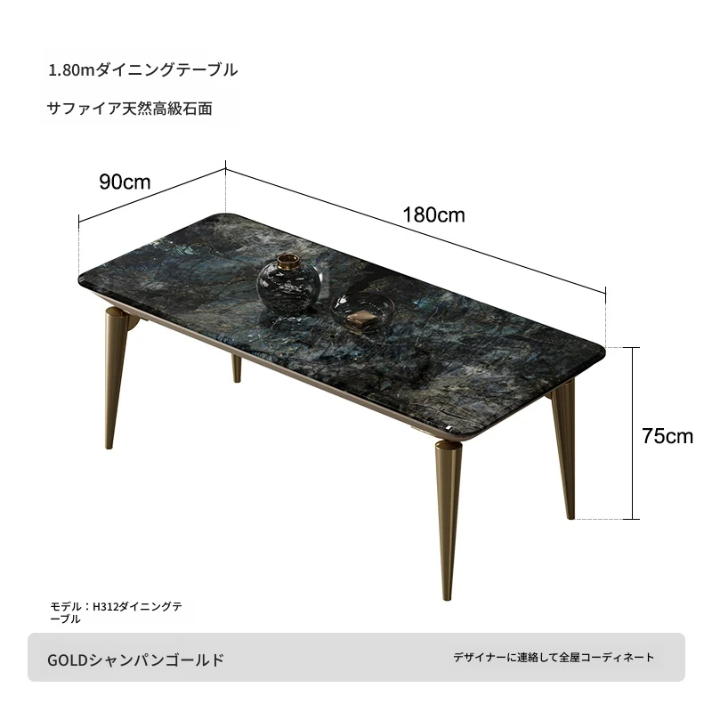 ダイニングテーブル/1.8M/サファイア天然豪石/シャンパンゴールド